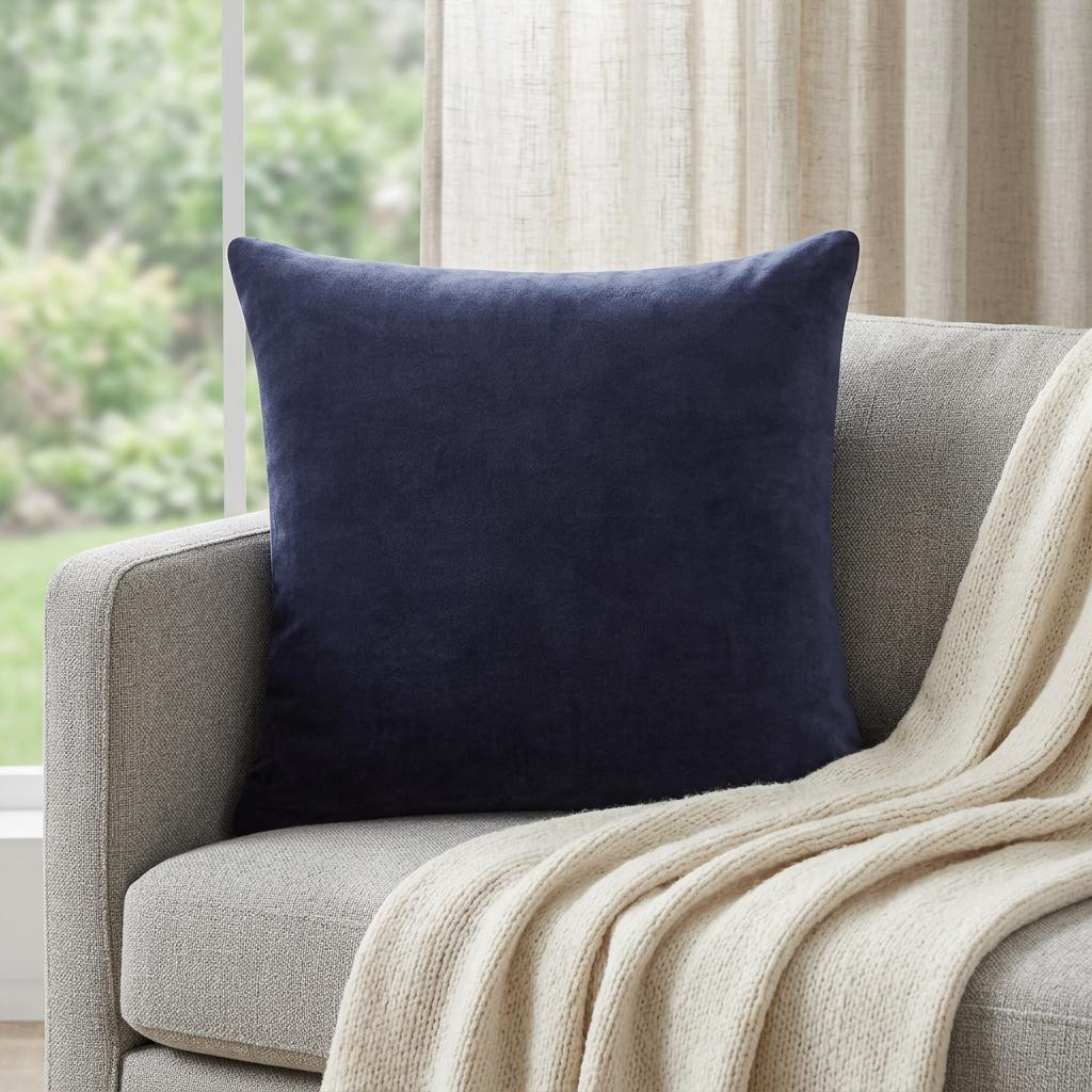 This 20" x 20" dark blue 100% cotton zippered pillow will add a beautiful decorative accent to your decor. Soft and textural dark blue 100% cotton has been used to make this pillow look and feel like a real treasure. For anyone that loves to decorate or accent their space with color and texture. A great decorative accessory for your favorite chair, to accent your sofa, or to use as part of your bed ensemble. 4" H x 20" W x 20" D