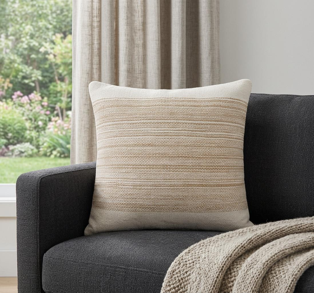 The perfect complement to your sofa, favorite chair, or bed, this 20-inch natural and ivory throw pillow is a great decorative accent. The natural and ivory coloring of the extremely durable and long lasting cotton blend will add dimension and texture to your space. Super soft and built to hold its shape, this polyfill-filled pillow is a great option. For anyone that loves to decorate or accent their space with color and texture. Decorative throw pillows not only add color and dimension to your space but can be comfy and supportive when you are lounging and cuddling as well. 20-inch h x 20-inch w x 4-inch d.