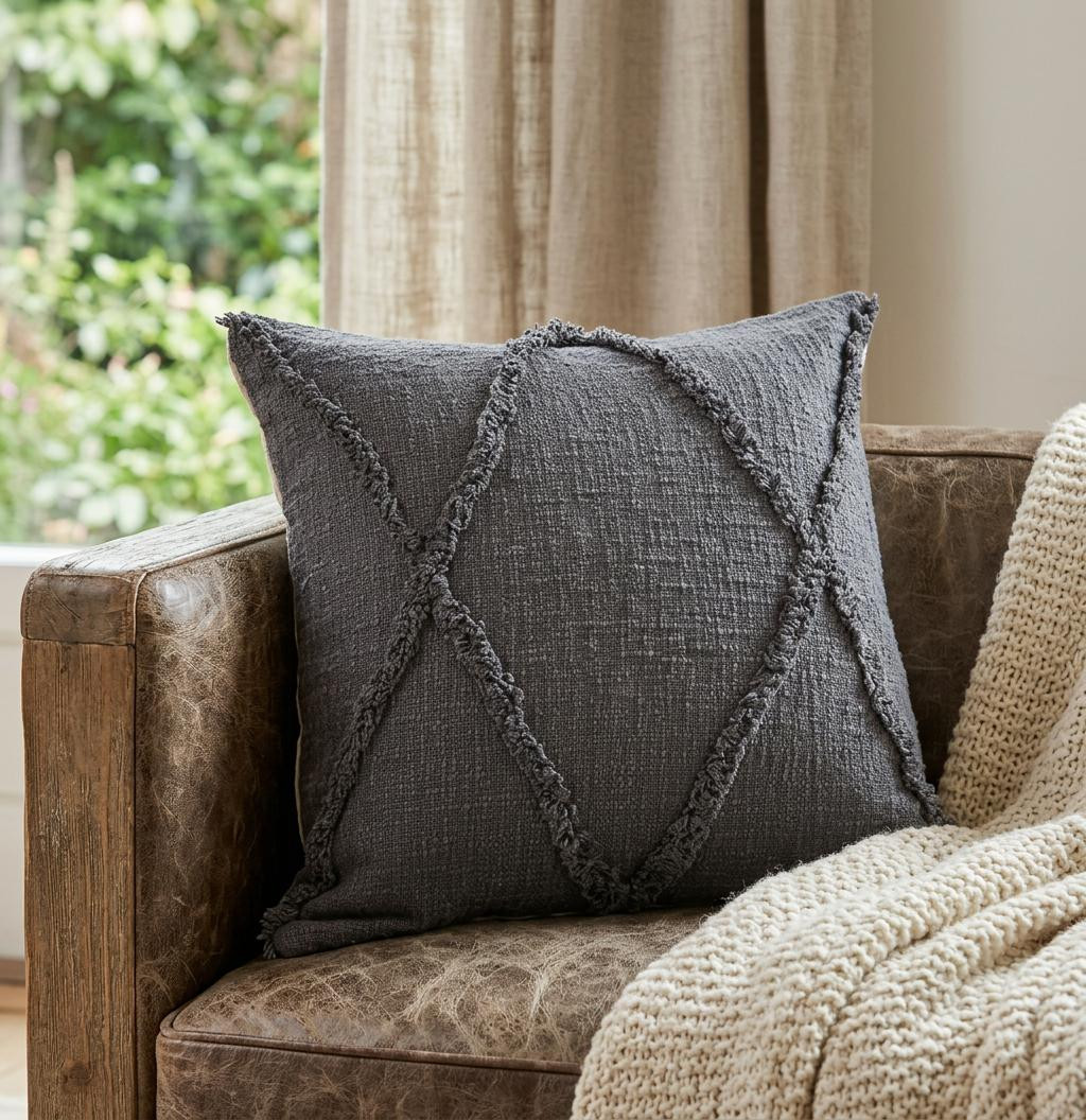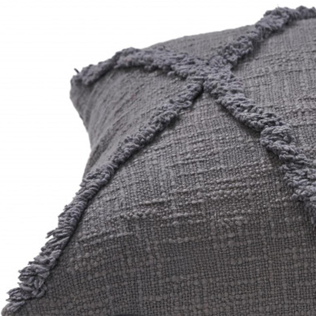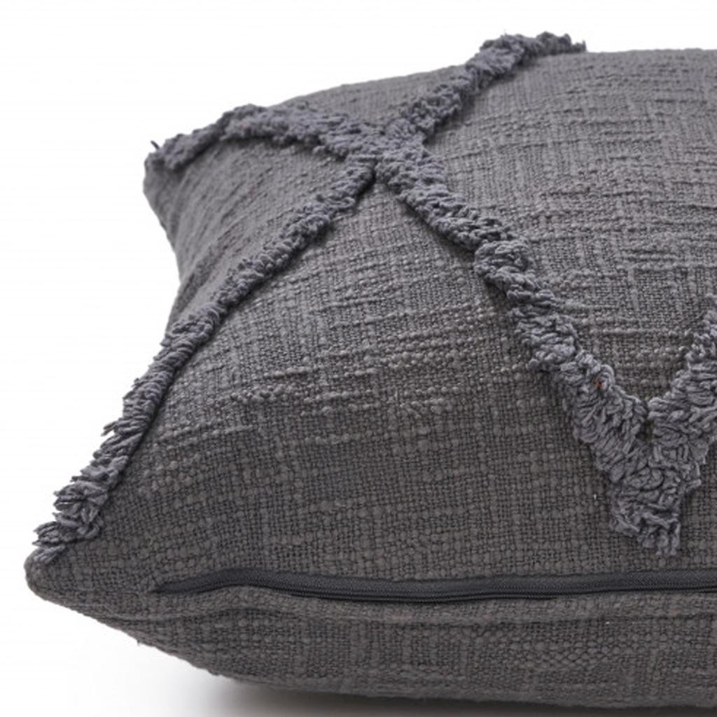 Add an air of fashion to your room and rejuvenate the space with this cute and fashionable 20" x 20" dark gray 100% cotton geometric zippered pillow. Soft and textural dark gray 100% cotton has been used to make this pillow look and feel like a real treasure. Great to use on its own or mix with other decorations for the perfect look. A great decorative accessory for your favorite chair, to accent your sofa, or to use as part of your bed ensemble. 4" H x 20" W x 20" D