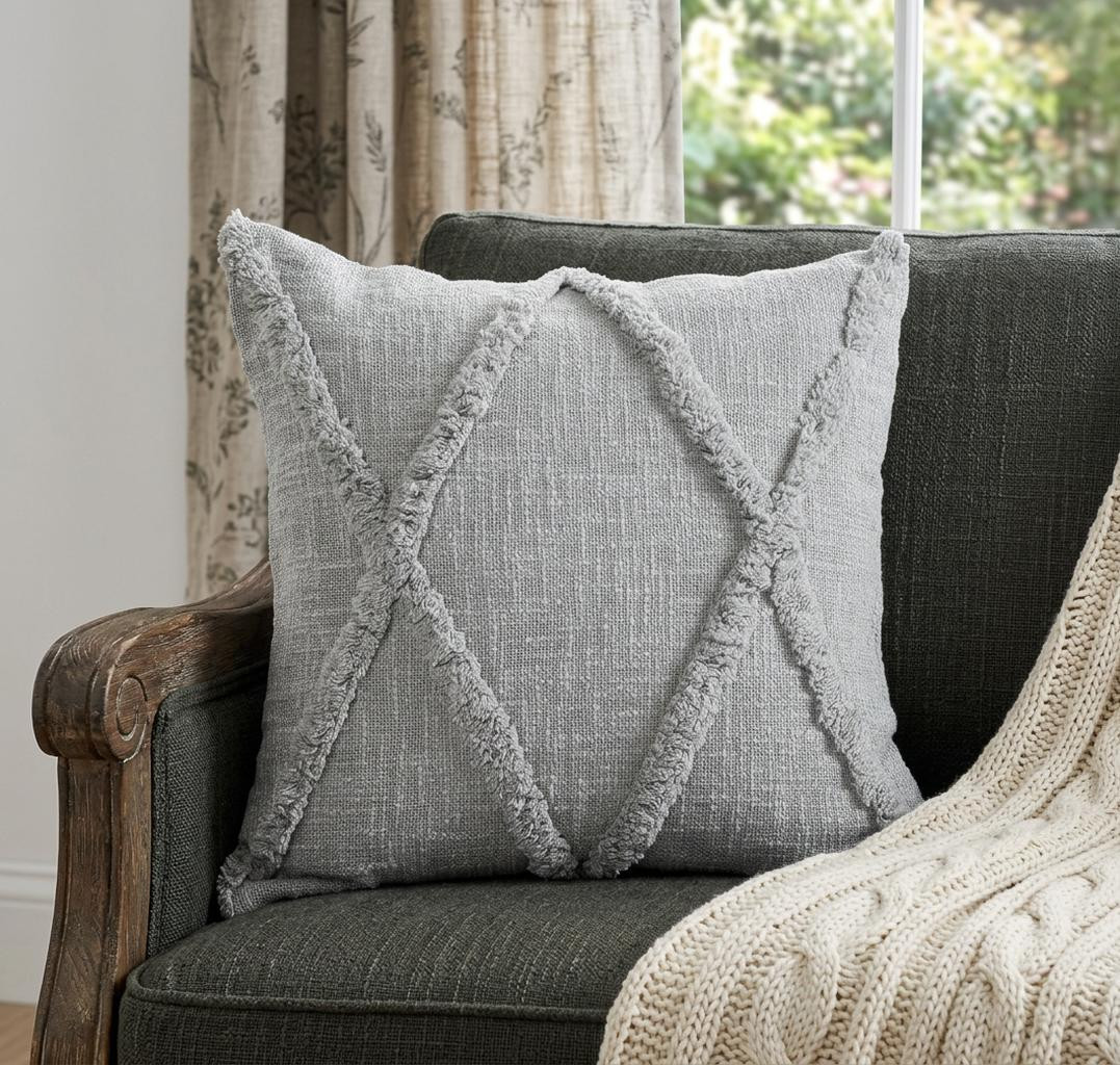 The perfect complement to your sofa, favorite chair, or bed, this 18" x 18" light gray 100% cotton geometric zippered pillow is a great decorative accent. Soft and textural light gray 100% cotton has been used to make this pillow look and feel like a real treasure. For anyone that loves to decorate or accent their space with color and texture. A great decorative accessory for your favorite chair, to accent your sofa, or to use as part of your bed ensemble. 18" H x 18" W x 18" D