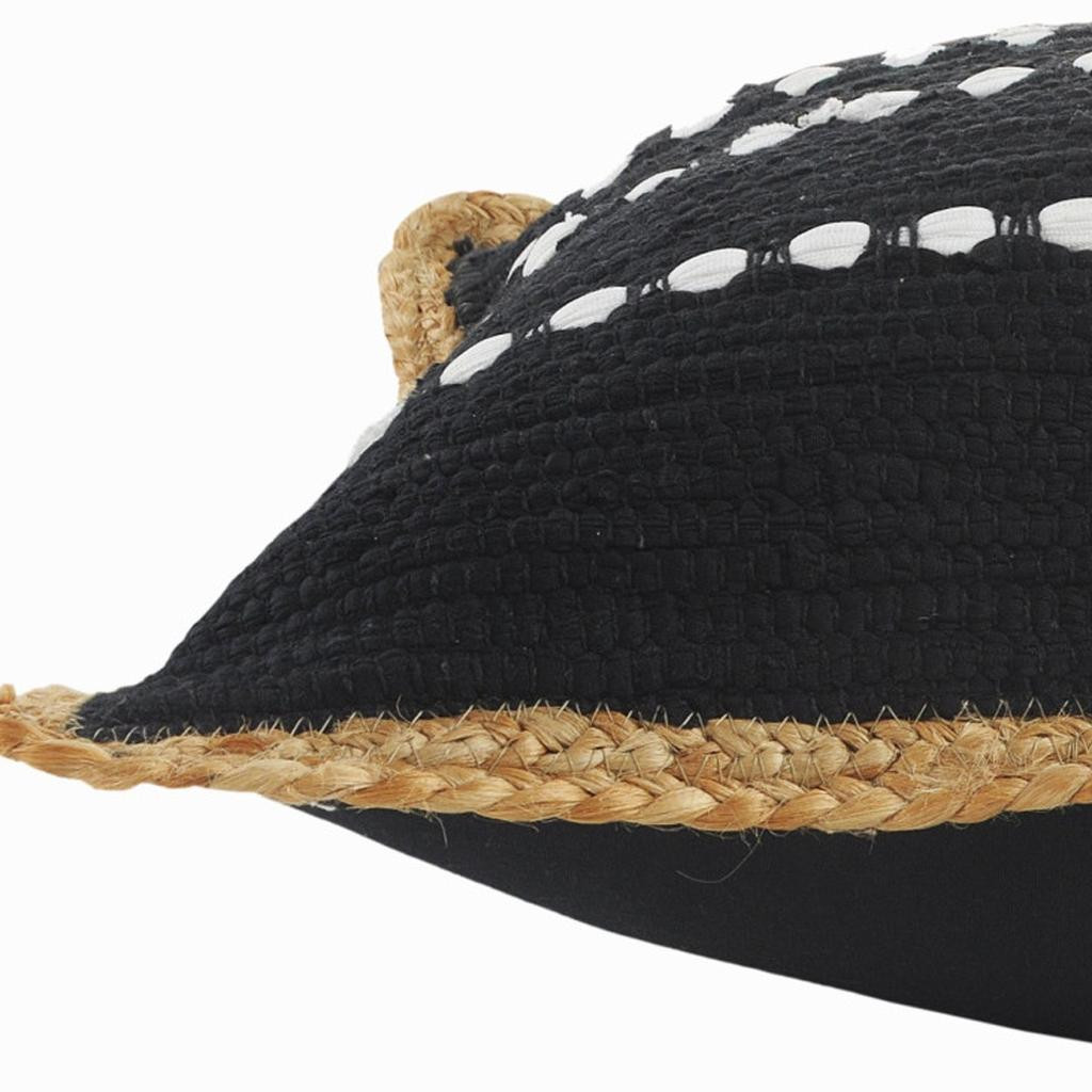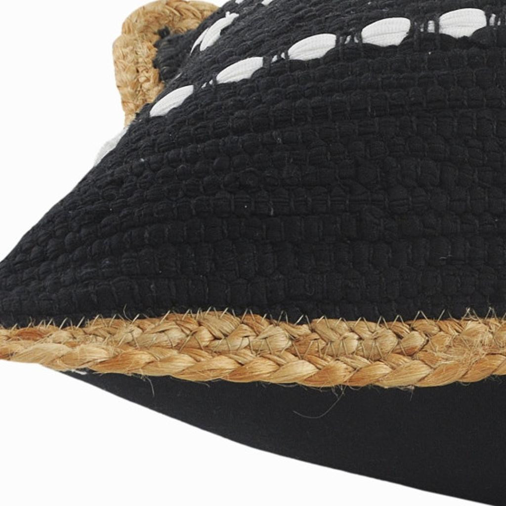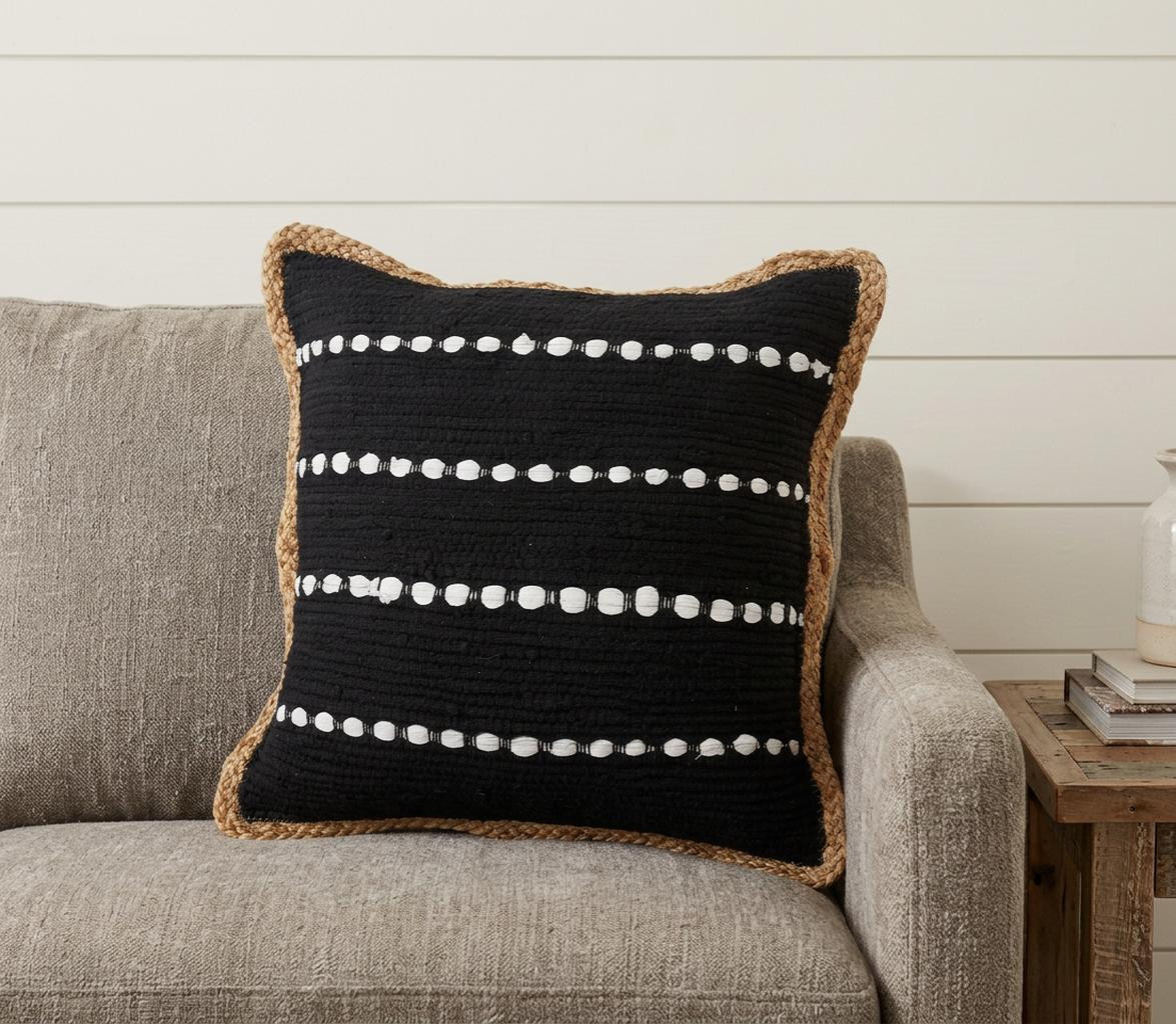 The perfect complement to your sofa, favorite chair, or bed, this 18" x 18" black white and tan 100% cotton striped zippered pillow is a great decorative accent. Soft and textural black white and tan 100% cotton has been used to make this pillow look and feel like a real treasure. For anyone that loves to decorate or accent their space with color and texture. Decorative pillows are a great way to change up the look and feel of your space easily and quickly. 18" H x 18" W x 18" D