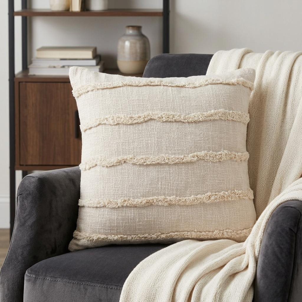 Bring a bit of fashion and zip to your space with this eye-catching and comfy 20" x 20" birch 100% cotton zippered pillow. Soft and textural birch 100% cotton has been used to make this pillow look and feel like a real treasure. Great to use on its own or mix with other decorations for the perfect look. A great decorative accessory for your favorite chair, to accent your sofa, or to use as part of your bed ensemble. 4" H x 20" W x 20" D