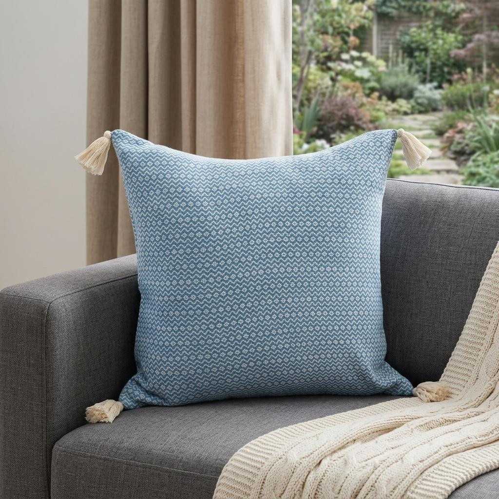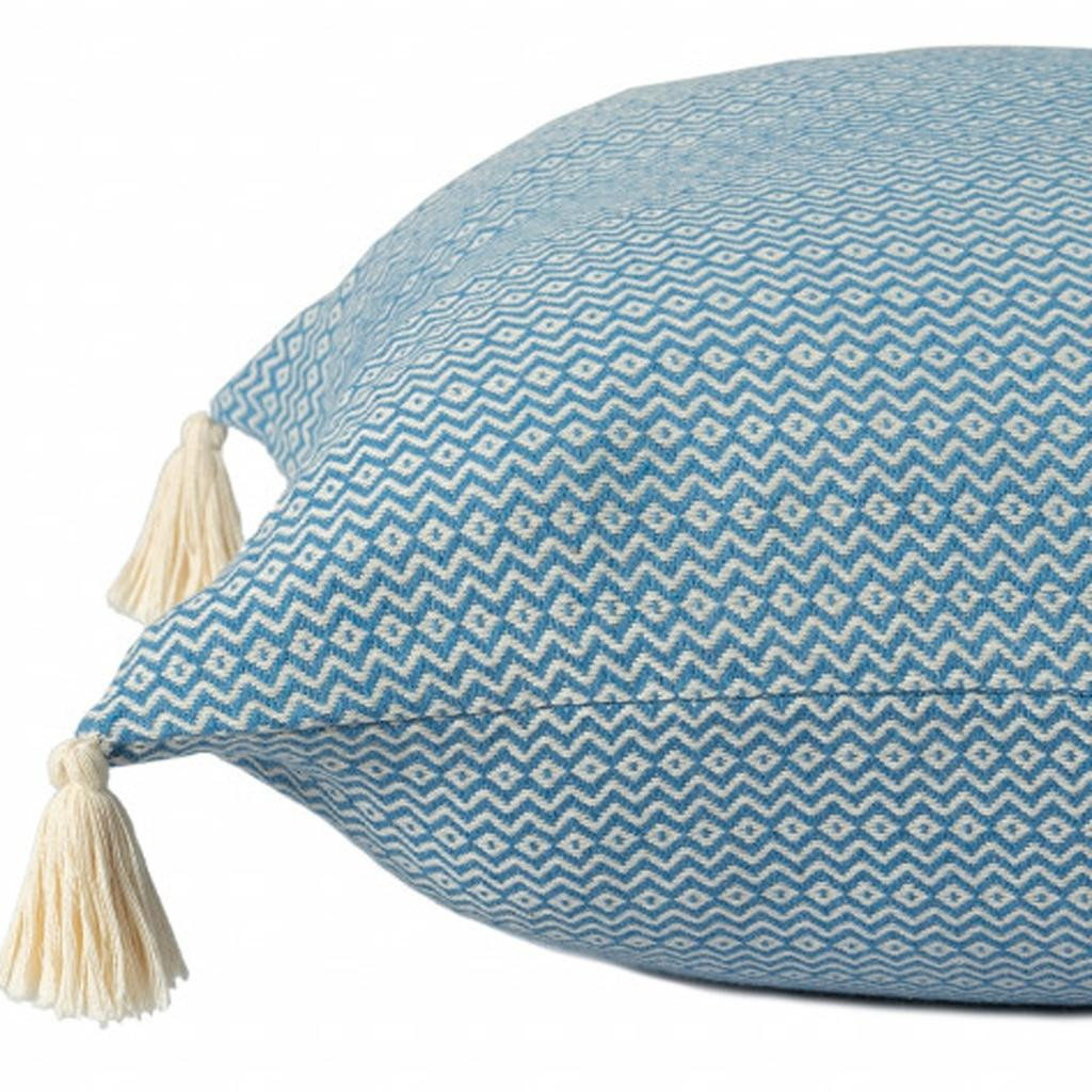 Unique and decorative, this comfortable 18" x 18" light blue 100% cotton geometric zippered pillow will leave a lasting impression. Soft and textural light blue 100% cotton has been used to make this pillow look and feel like a real treasure. For anyone that loves to decorate or accent their space with color and texture. A great decorative accessory for your favorite chair, to accent your sofa, or to use as part of your bed ensemble. 18" H x 18" W x 18" D
