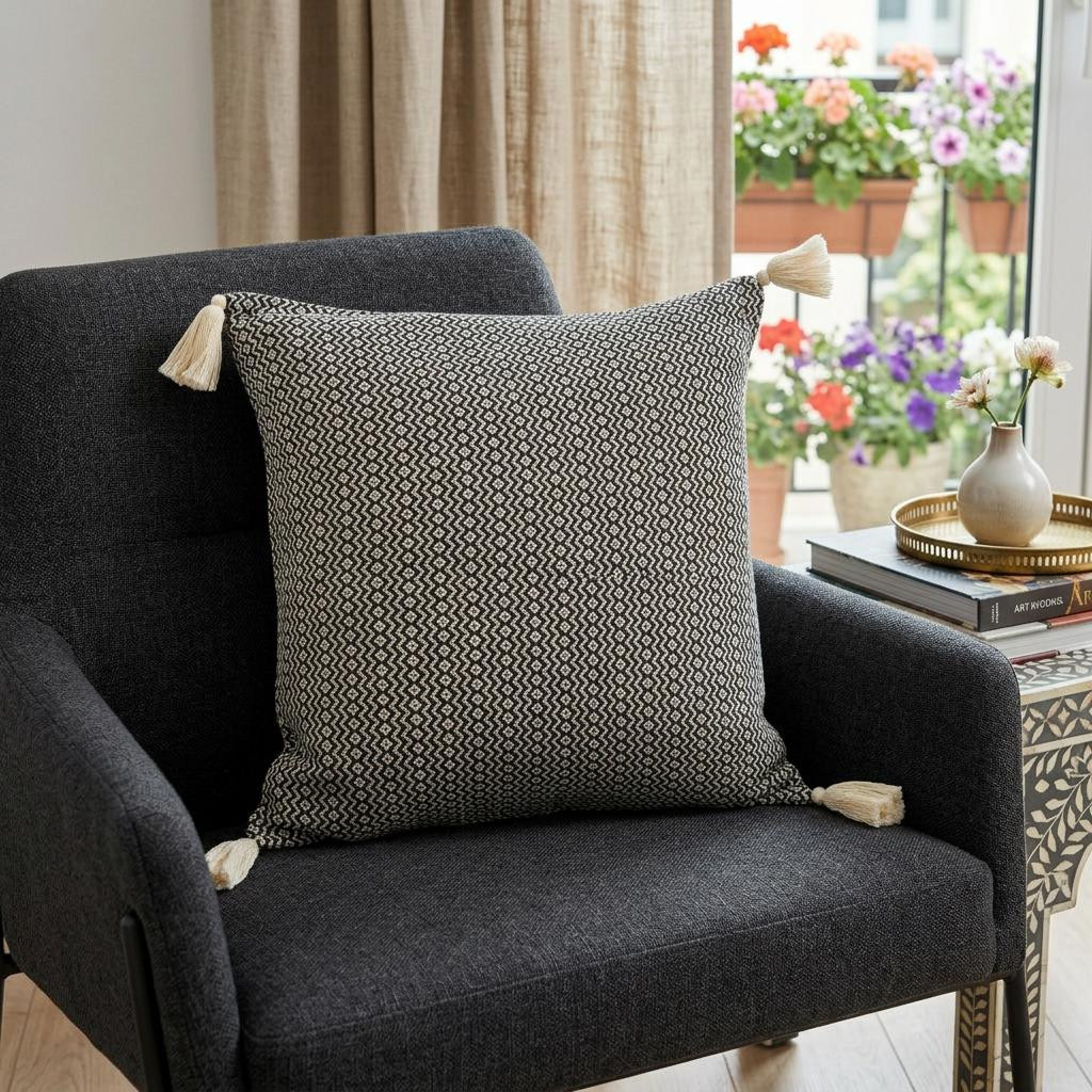 zippered 18" X 18" X cotton throw pillow, cotton throw pillow, 18" X 18" X cotton throw pillow, black geometric zippered 18" X 18" X cotton, 18" X 18" X black geometric zippered |