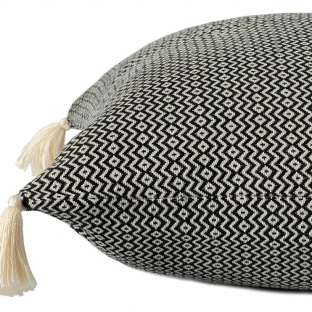 Add an air of fashion to your room and rejuvenate the space with this cute and fashionable 18" x 18" black 100% cotton geometric zippered pillow. This black colored decorative pillow is made from high grade 100% cotton that makes it super soft to the touch and long lasting. For anyone that loves to decorate or accent their space with color and texture. Decorative pillows are a great way to change up the look and feel of your space easily and quickly. 18" H x 18" W x 18" D