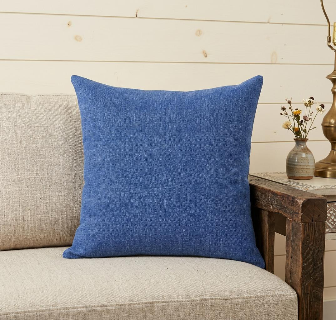 Bring a bit of fashion and zip to your space with this eye-catching and comfy 20" x 20" classic blue 100% cotton zippered pillow. This classic blue colored decorative pillow is made from high grade 100% cotton that makes it super soft to the touch and long lasting. Great to use on its own or mix with other decorations for the perfect look. A great decorative accessory for your favorite chair, to accent your sofa, or to use as part of your bed ensemble. 4" H x 20" W x 20" D