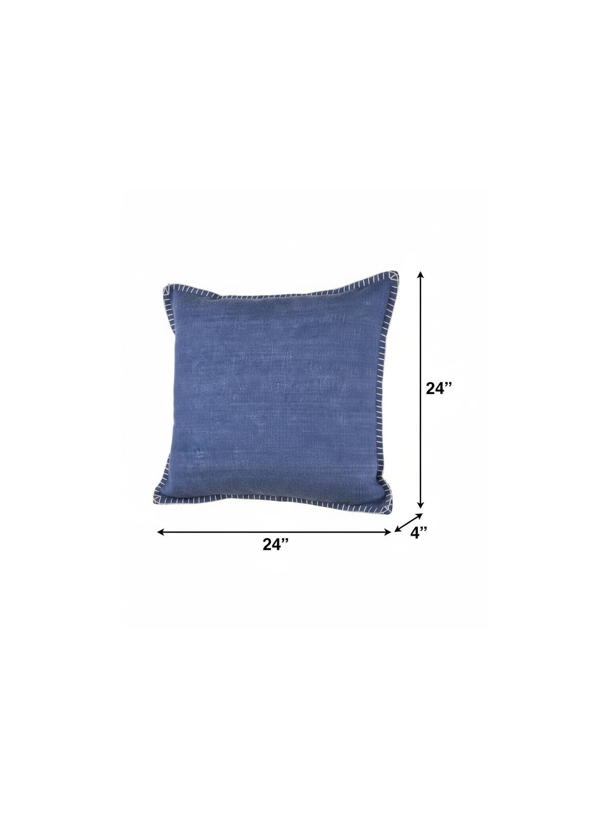 Unique and decorative, this comfortable 24-inch blue throw pillow will leave a lasting impression. This soft and durable decorative pillow is expertly made of high grade, long lasting cotton in a blue coloration. This soft polyfill filled pillow not only is decorative but made to be comfy and cozy all day long. Great to use on its own or mix with other decorations for the perfect look. A great decorative accessory to add color and dimension to your favorite chair, accent your sofa, or to use as part of your bed ensemble. 24-inch h x 24-inch w x 4-inch d.