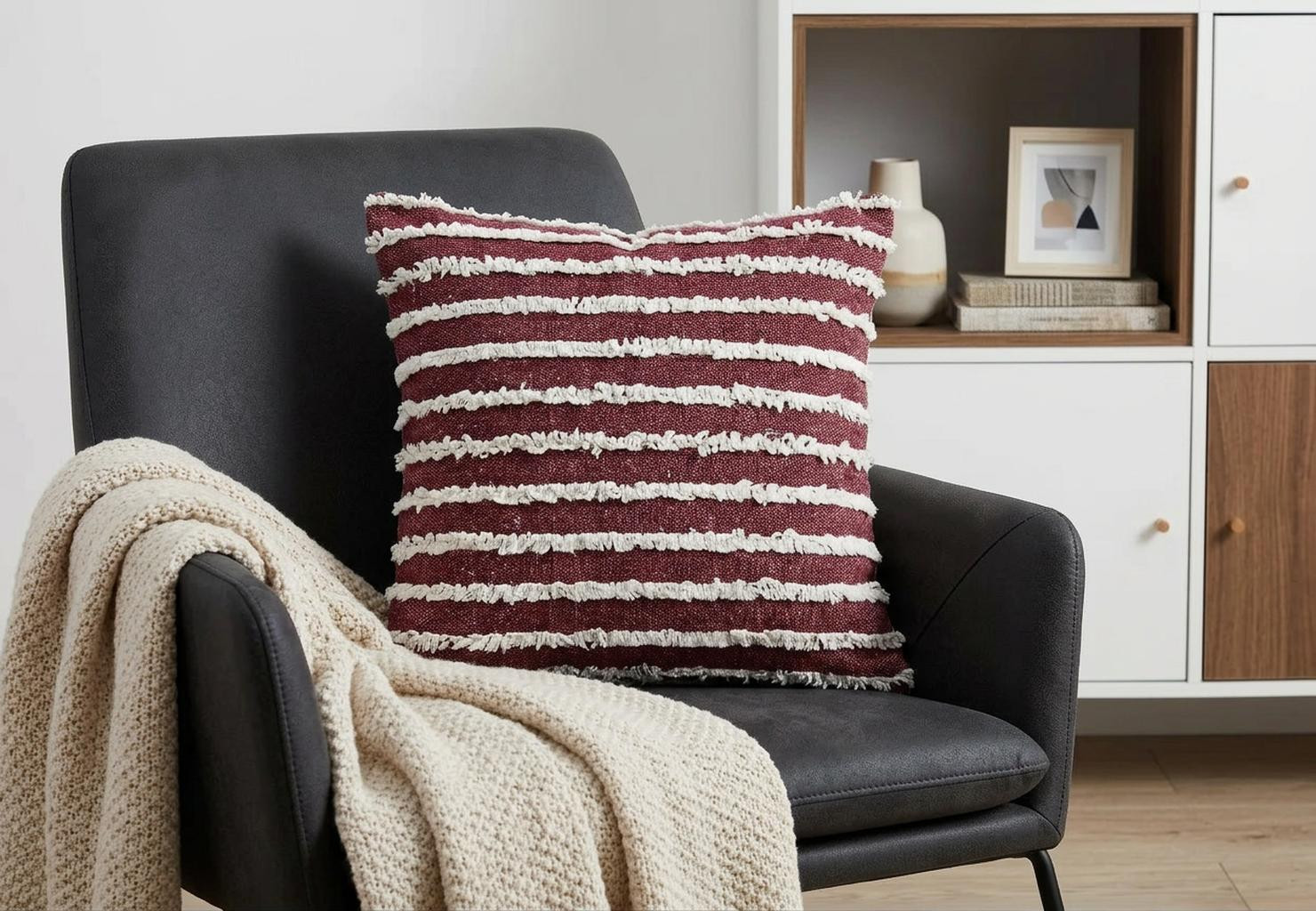 white cotton striped throw pillow, cotton striped throw pillow, striped throw pillow, merlot white cotton striped throw, 20" merlot white cotton |