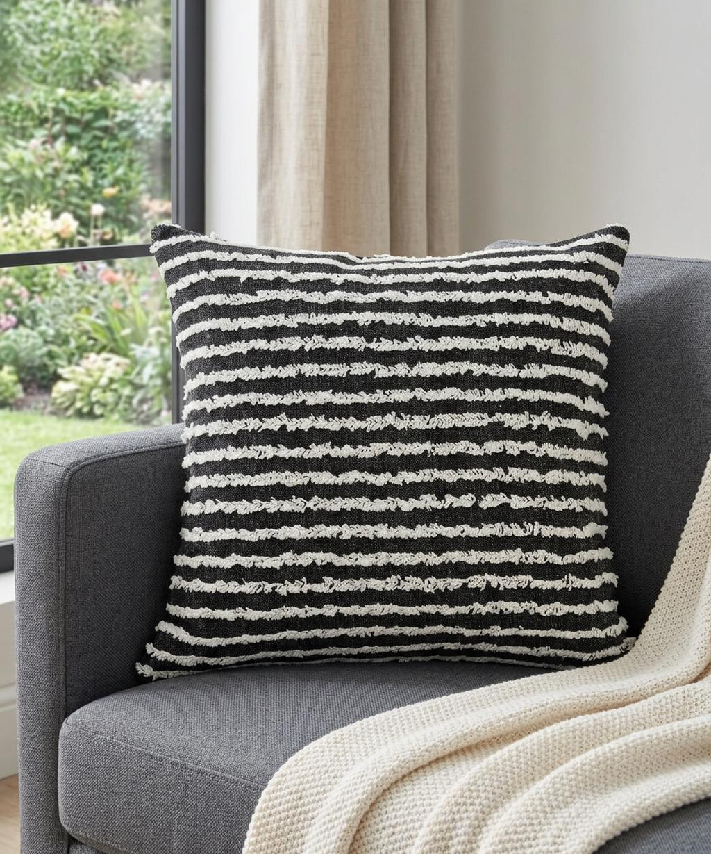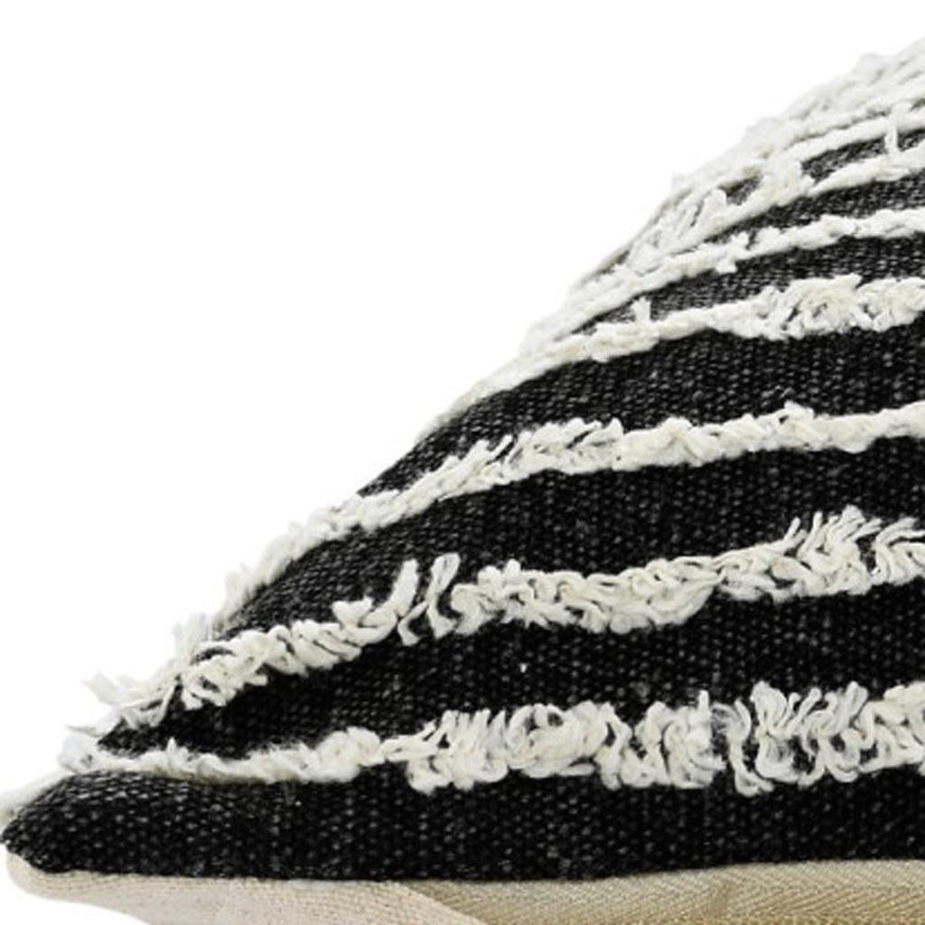 This 20" x 20" black and cream 100% cotton striped zippered pillow will add a beautiful decorative accent to your decor. This super soft decorative pillow is expertly made of high grade, long lasting 100% cotton in a black and cream coloration. For anyone that loves to decorate or accent their space with color and texture. Decorative pillows are a great way to change up the look and feel of your space easily and quickly. 4" H x 20" W x 20" D