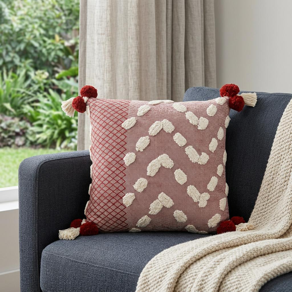 The perfect complement to your sofa, favorite chair, or bed, this 20" x 20" red and cream 100% cotton geometric zippered pillow is a great decorative accent. Soft and textural red and cream 100% cotton has been used to make this pillow look and feel like a real treasure. Decorative throw pillows not only add color and dimension to your space but can be comfy and supportive when you are lounging and cuddling as well. A great decorative accessory for your favorite chair, to accent your sofa, or to use as part of your bed ensemble. 4" H x 20" W x 20" D