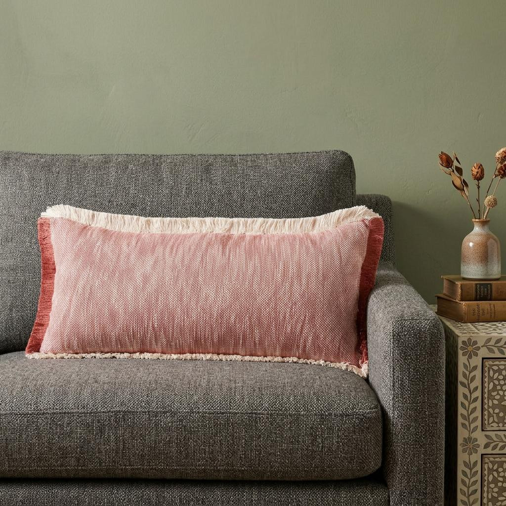 This 14" x 36" auburn red and white 100% cotton geometric zippered pillow will add a beautiful decorative accent to your decor. Soft and textural auburn red and white 100% cotton has been used to make this pillow look and feel like a real treasure. Decorative throw pillows not only add color and dimension to your space but can be comfy and supportive when you are lounging and cuddling as well. Decorative pillows are a great way to change up the look and feel of your space easily and quickly. 14" H x 14" W x 36" D