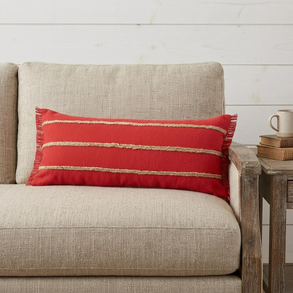 This 14" x 36" red and tan 100% cotton zippered pillow will add a beautiful decorative accent to your decor. This red and tan colored decorative pillow is made from high grade 100% cotton that makes it super soft to the touch and long lasting. Great to use on its own or mix with other decorations for the perfect look. Decorative pillows are a great way to change up the look and feel of your space easily and quickly. 14" H x 14" W x 36" D