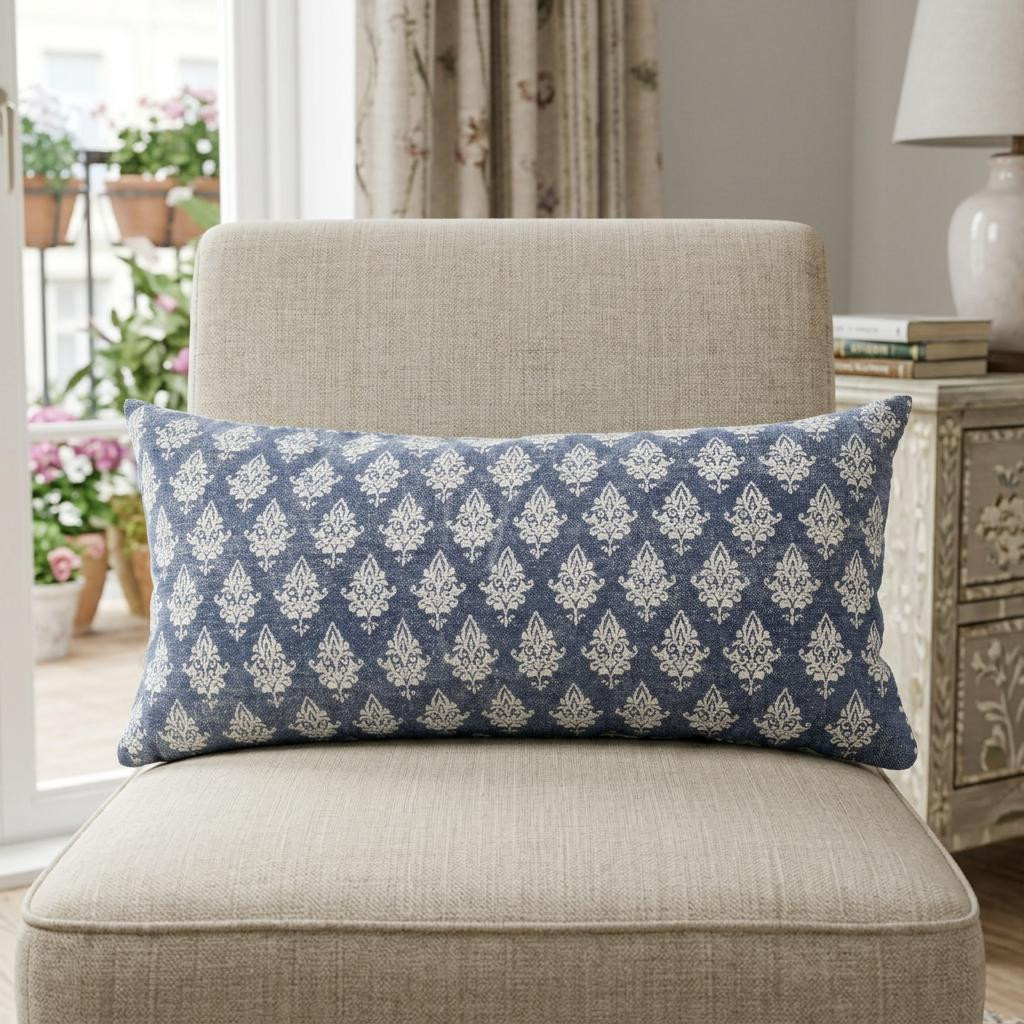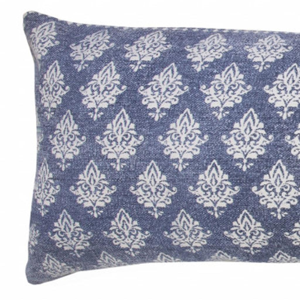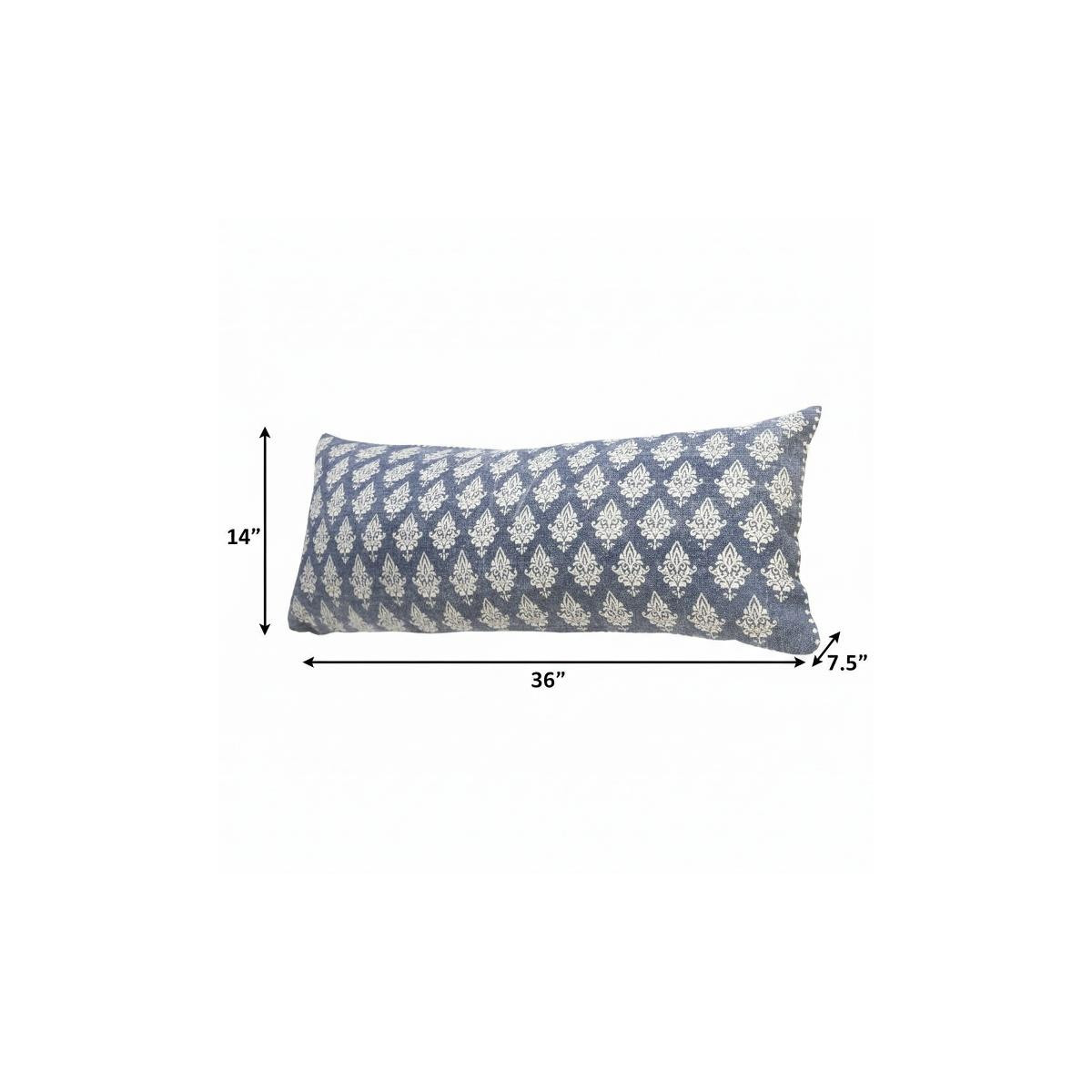 Bring a bit of fashion and zip to your space with this eye-catching and comfy 14" x 36" vintage indigo blue and white 100% cotton geometric zippered pillow. This vintage indigo blue and white colored decorative pillow is made from high grade 100% cotton that makes it super soft to the touch and long lasting. Great to use on its own or mix with other decorations for the perfect look. A great decorative accessory for your favorite chair, to accent your sofa, or to use as part of your bed ensemble. 14" H x 14" W x 36" D