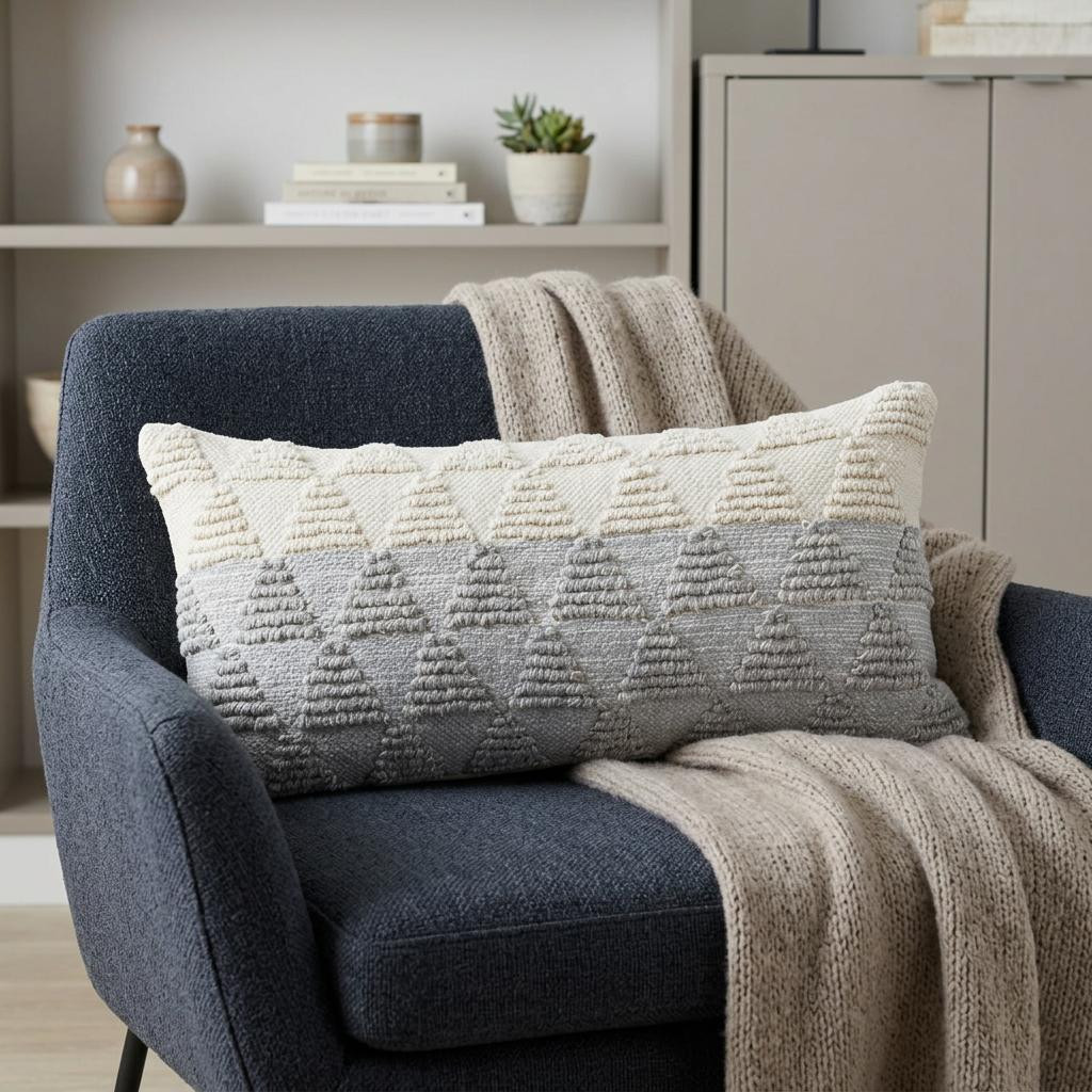 white cotton geometric throw pillow, cotton geometric throw pillow, geometric throw pillow, 14" X 36" gray white cotton, gray white cotton geometric throw |