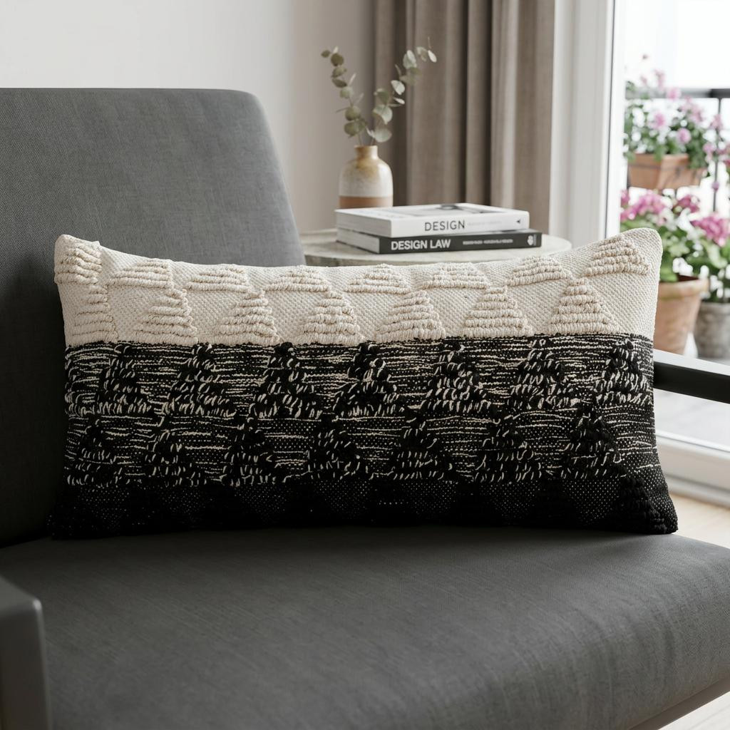 zippered 14" X 36" X cotton throw pillow, cotton throw pillow, 14" X 36" X cotton throw pillow, black geometric zippered 14" X 36" X cotton, geometric zippered 14" X 36" X cotton |
