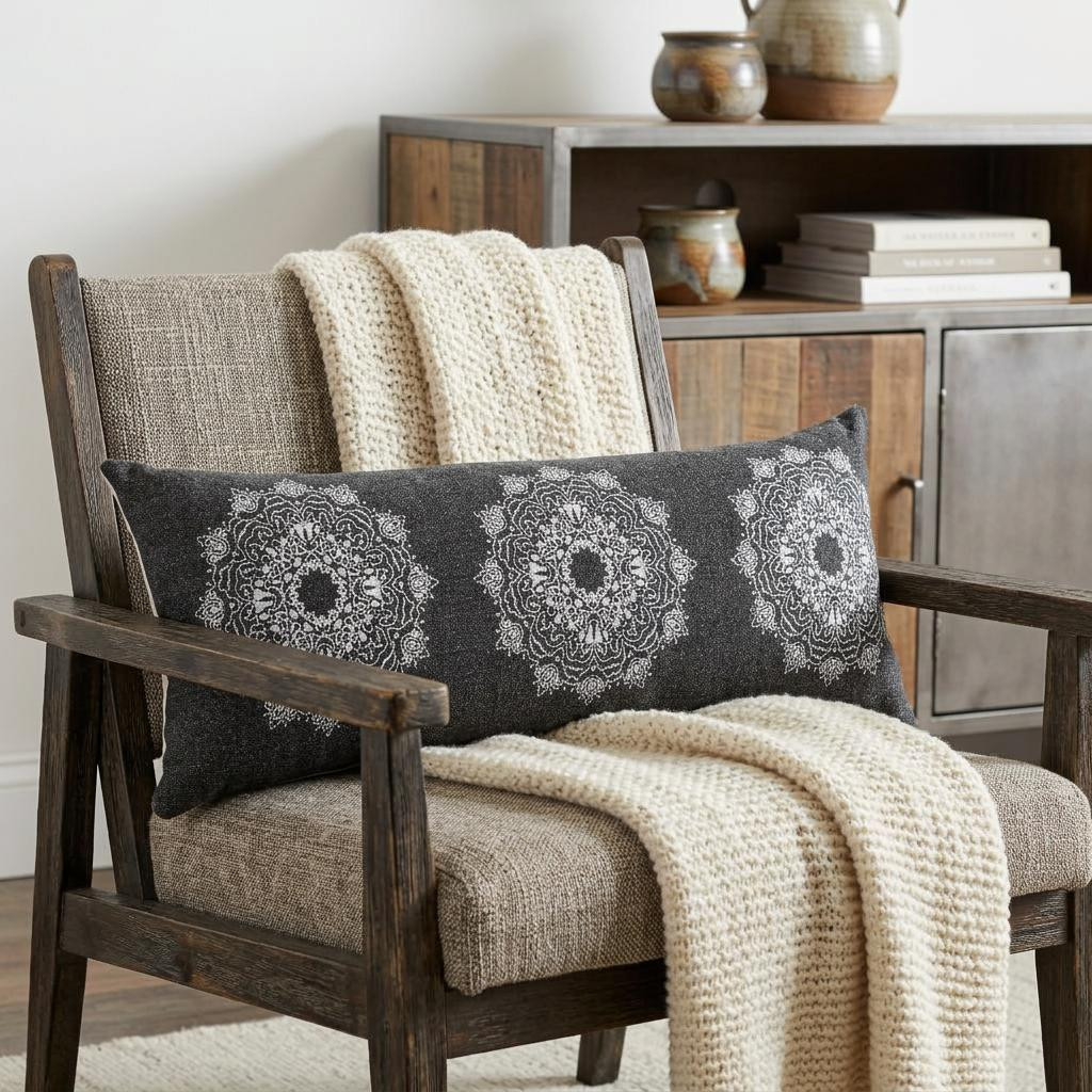white cotton medallion throw pillow, cotton medallion throw pillow, medallion throw pillow, 14" X 36" black white cotton medallion, black white cotton medallion throw |