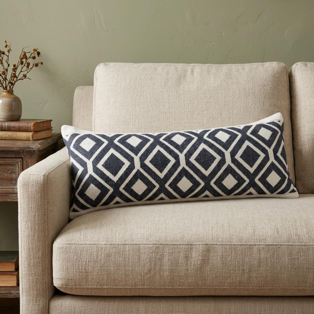 zippered 14" X 36" X cotton throw pillow, cotton throw pillow, 14" X 36" X cotton throw pillow, black geometric zippered 14" X 36" X cotton, geometric zippered 14" X 36" X cotton |