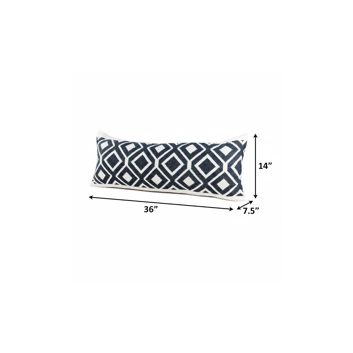 Unique and decorative, this comfortable 14" x 36" deep navy and white 100% cotton geometric zippered pillow will leave a lasting impression. Soft and textural deep navy and white 100% cotton has been used to make this pillow look and feel like a real treasure. Great to use on its own or mix with other decorations for the perfect look. Decorative pillows are a great way to change up the look and feel of your space easily and quickly. 14" H x 14" W x 36" D
