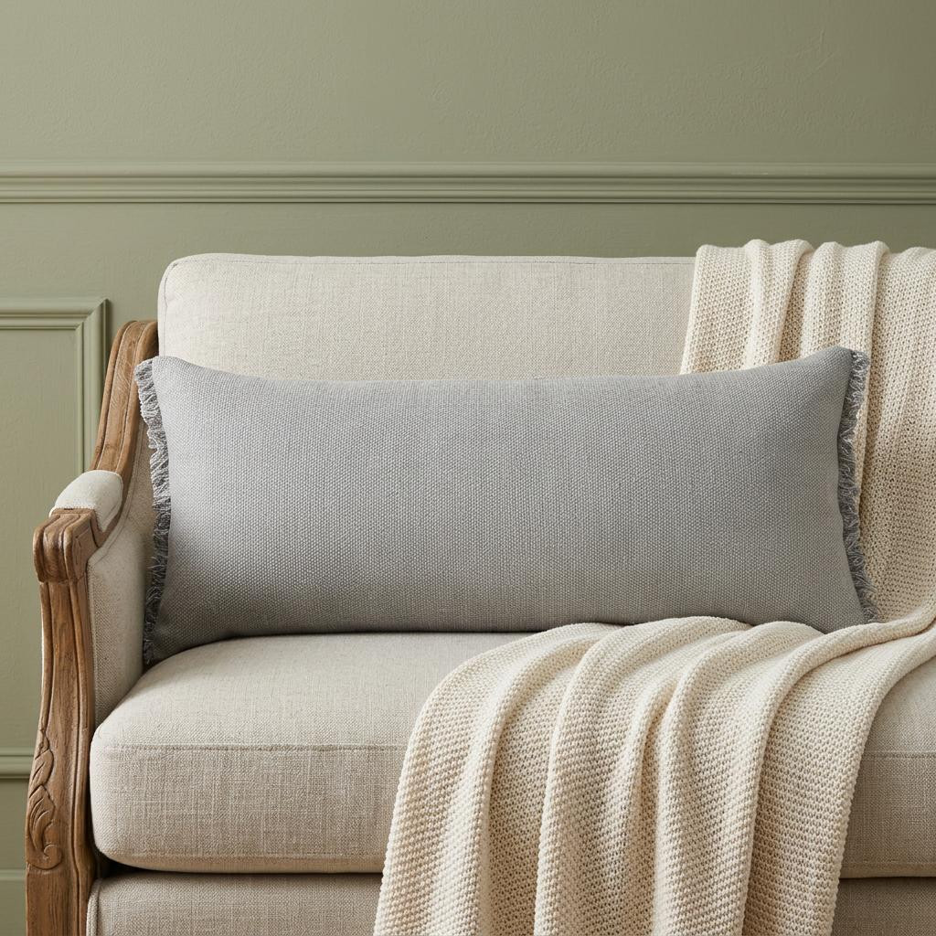 This 14-inch x 36-inch light gray stonewashed cotton throw pillow with fringe will add a beautiful decorative accent to your decor. The light gray colored decorative pillow is made from high grade stonewashed cotton that is durable and long lasting. Super soft and built to hold its shape, this polyester filled pillow is a great option to not only add color and dimension to your space but can be comfy and supportive when you are lounging and cuddling as well. Decorative pillows are a great way to change up the look and feel of your space easily and quickly. 14-inch H x 36-inch W x 7.5-inch D