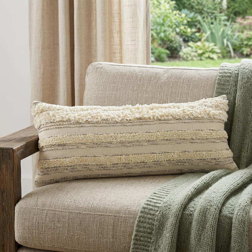 The 14-inch x 36-inch cream gray and tan cotton striped throw pillow is the perfect decorative accessory for your home. Durable cream, gray, and tan cotton has been used to give this pillow a beautiful look that will stand the test of time. This soft polyfill filled pillow not only is decorative but made to be comfy and cozy all day long. Decorative pillows are a great way to change up the look and feel of your space easily and quickly. A great decorative accessory to add color and dimension to your favorite chair, accent your sofa, or to use as part of your bed ensemble. 14-inch h x 36-inch w x 7.5-inch d.