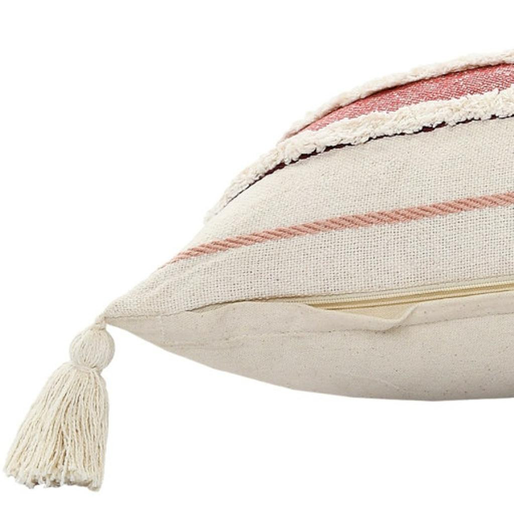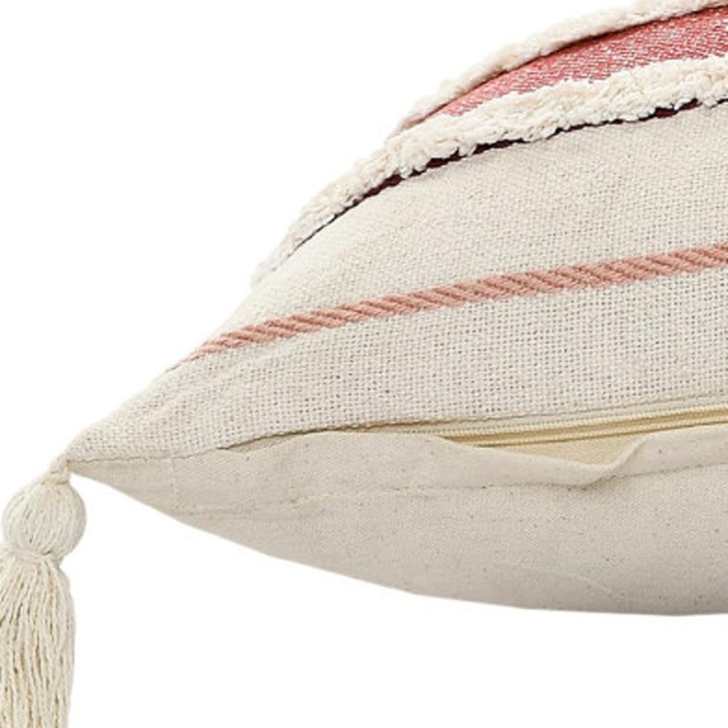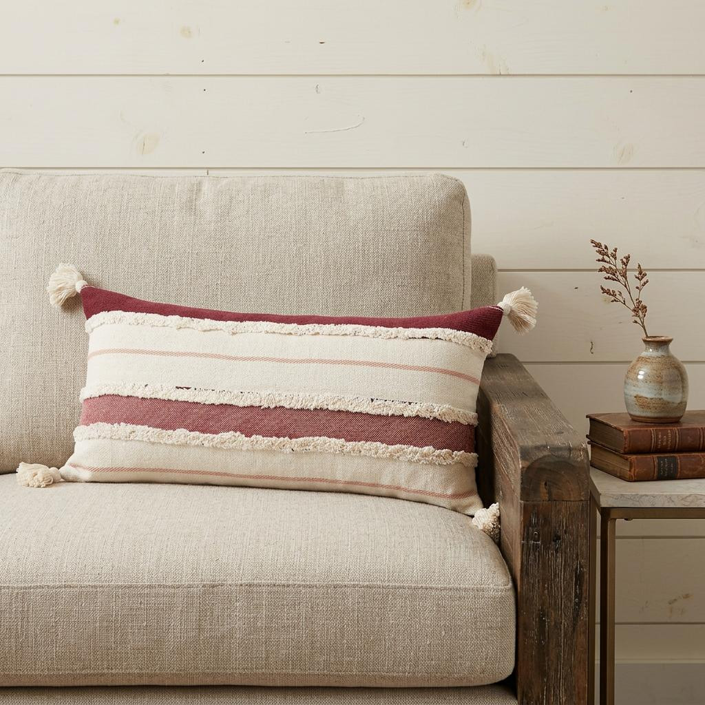 Unique and decorative, this comfortable 14" x 36" red and off-white 100% cotton striped zippered pillow will leave a lasting impression. This super soft decorative pillow is expertly made of high grade, long lasting 100% cotton in a red and off-white coloration. Great to use on its own or mix with other decorations for the perfect look. A great decorative accessory for your favorite chair, to accent your sofa, or to use as part of your bed ensemble. 14" H x 14" W x 36" D