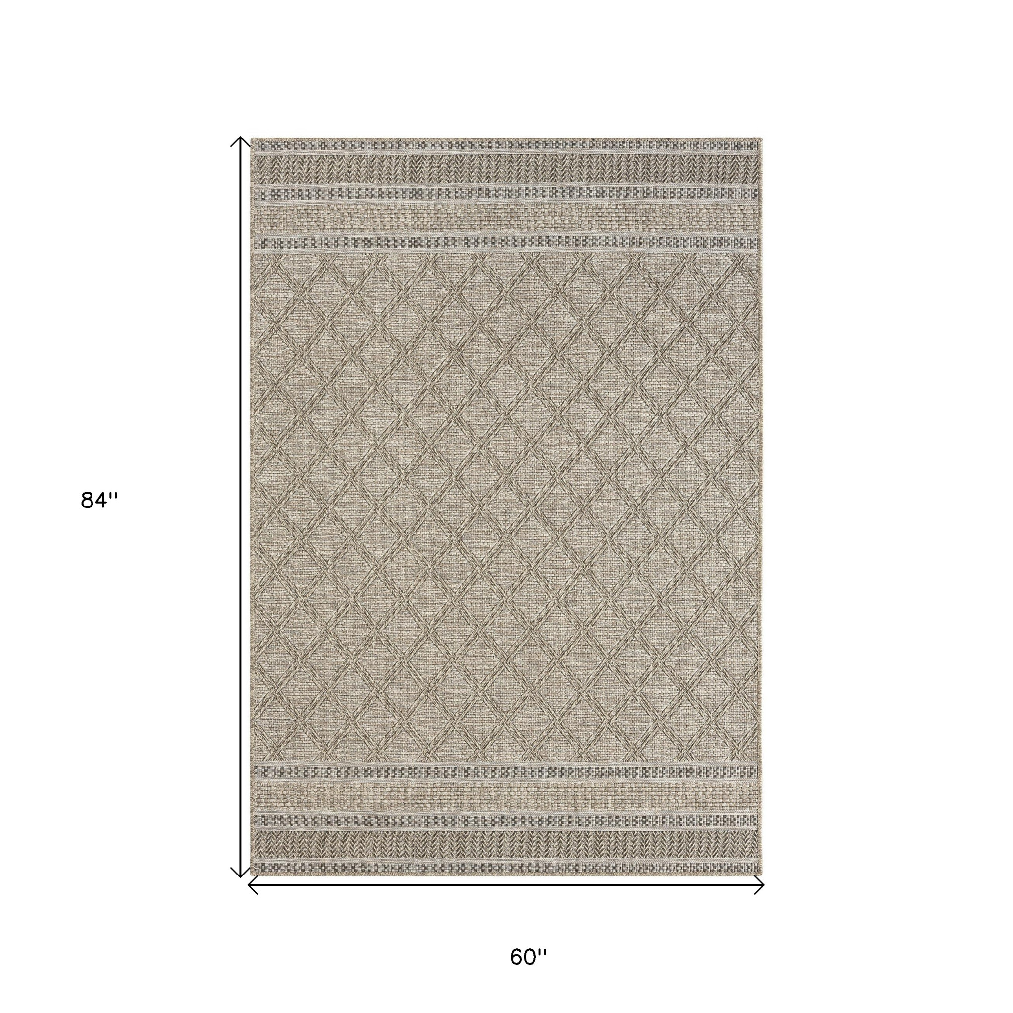 This 5' x 7' gray geometric handmade indoor outdoor area rug, is a great way to add warmth to a room. This rectangle shaped rug features a geometric design in gray to give it visual interest. A classic shape marries with good looking design for your space Area Rugs help to give warmth and sense of home to your space. 0.3" H x 60" W x 84" D