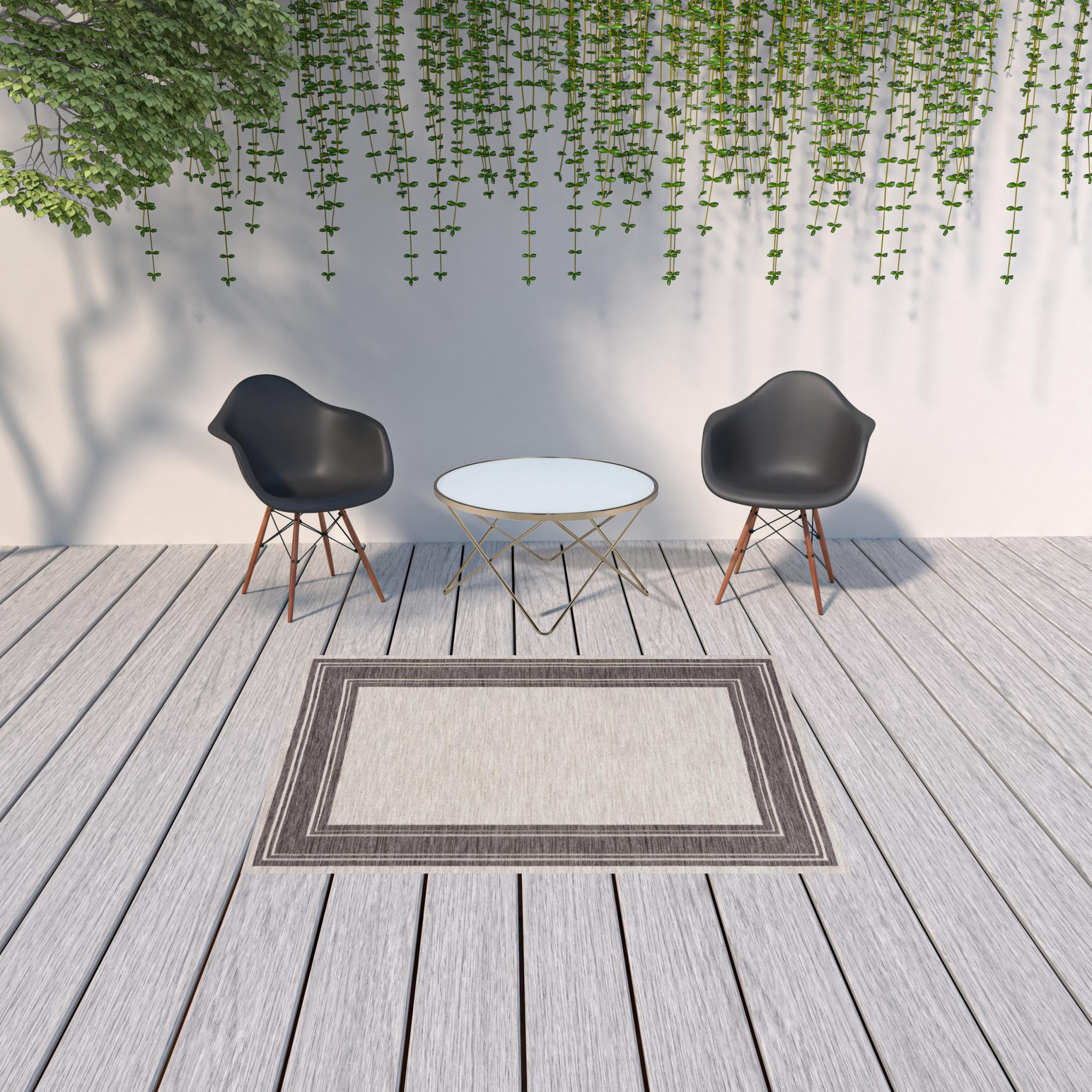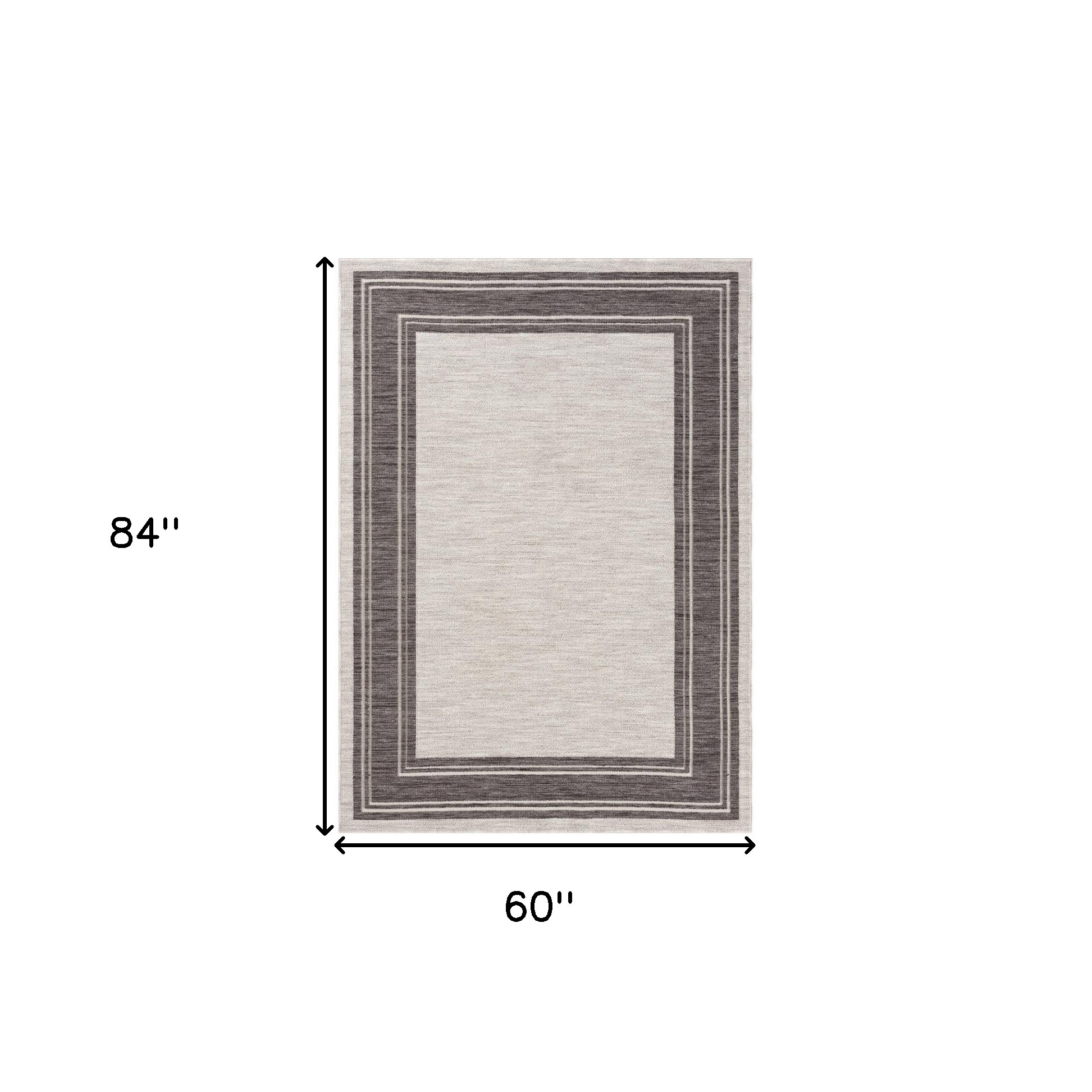 This 5' x 7' gray and ivory indoor outdoor area rug, is a great way to add warmth to a room. This rectangle shaped rug flaunts a gray and ivory color that will be a great way to accent your space. Solid colors are versatile and will blend with any existing decor style. This superior Turkish rug represents the highest quality and is built to last. Place this area rug against a hardwood or tile floor and it will enliven your living space with style and sophistication. 0.35" H x 60" W x 84" D