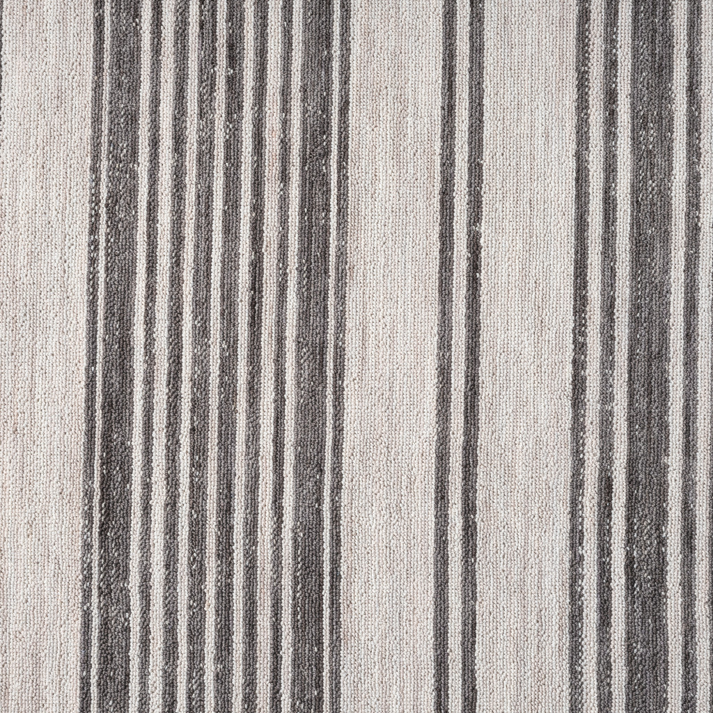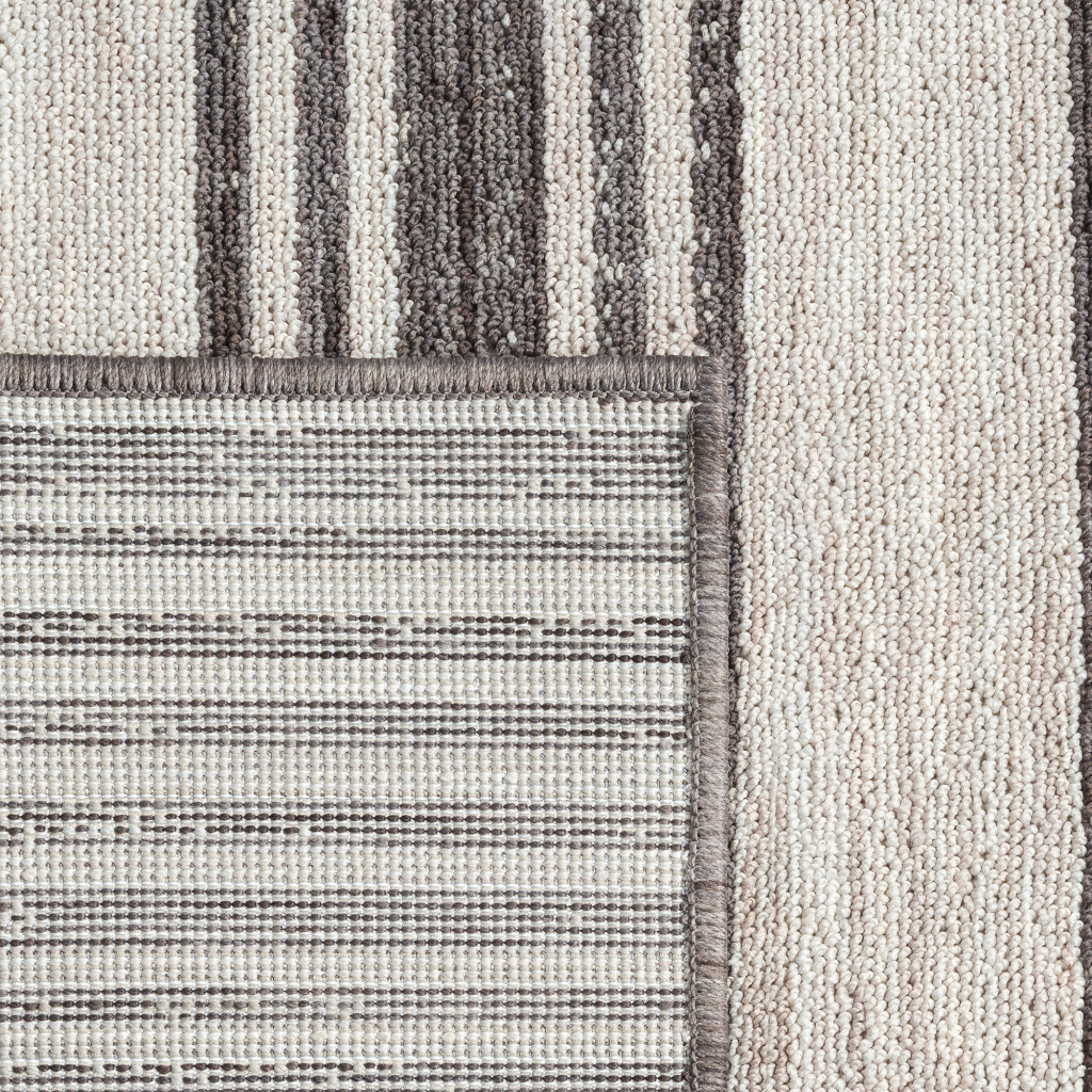 Add great coloration and comfortable texture to your space with this 5' x 7' gray and ivory striped indoor outdoor area rug. This rectangle shaped rug features a striped design in gray and ivory to give it visual interest. A classic shape marries with good looking design for your space This superior Turkish rug represents the highest quality and is built to last. Place this area rug against a hardwood or tile floor and it will enliven your living space with style and sophistication. 0.35" H x 60" W x 84" D