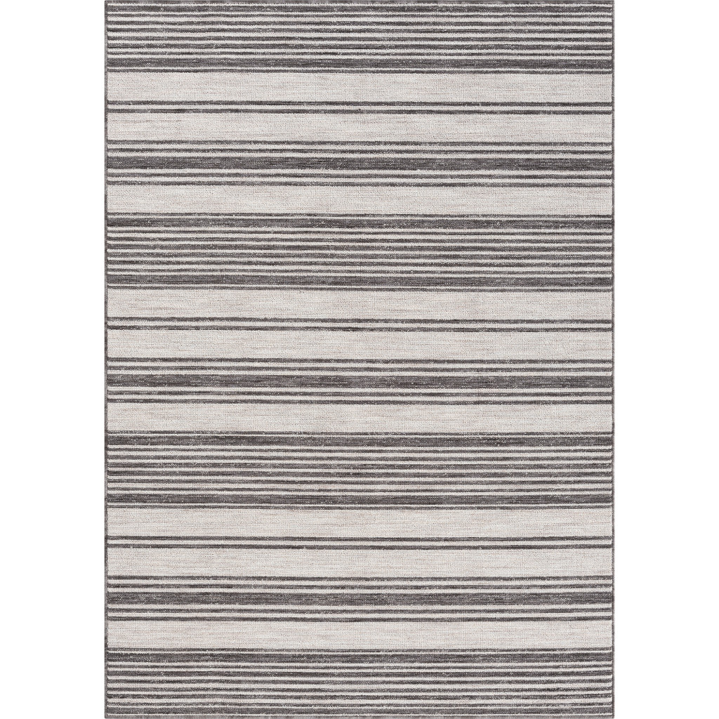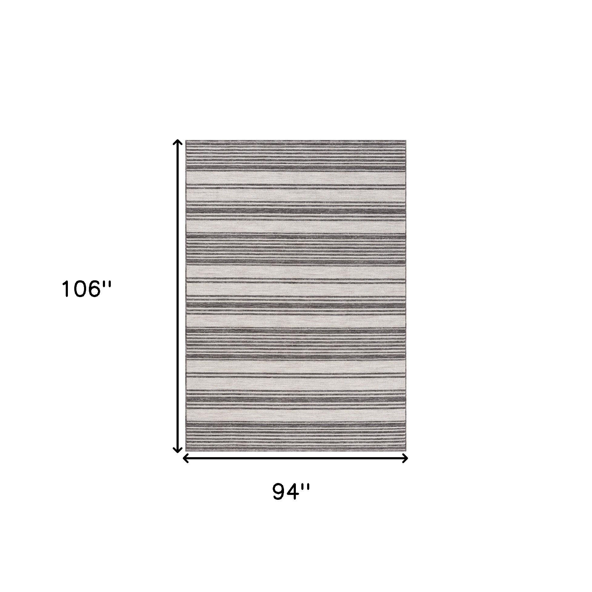 This 8' x 9' gray and ivory striped indoor outdoor area rug, is a great way to add warmth to a room. This rectangle shaped rug features a striped design in gray and ivory to give it visual interest. A classic shape marries with good looking design for your space Made in Turkey, this rug offers high quality combined with good looking designer sensibilities. Area Rugs help to give warmth and sense of home to your space. 0.35" H x 94" W x 106" D