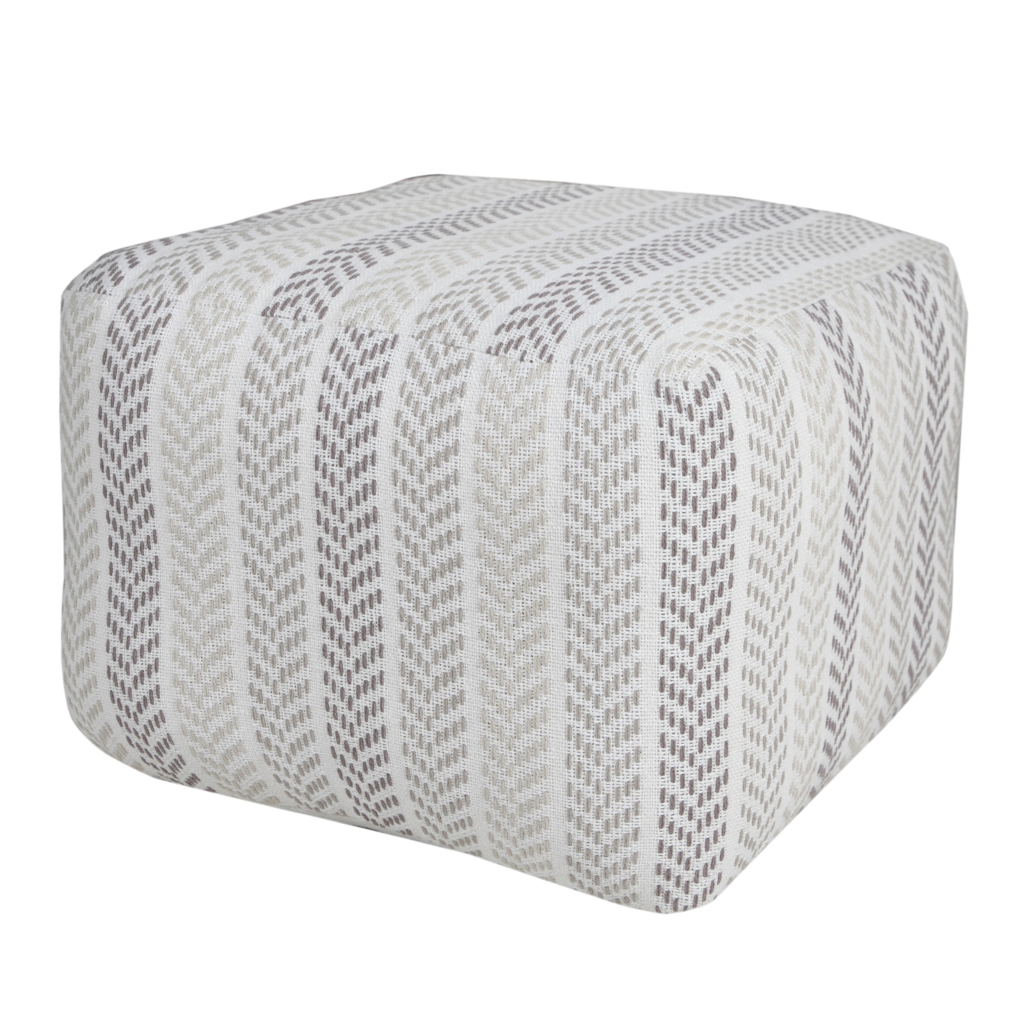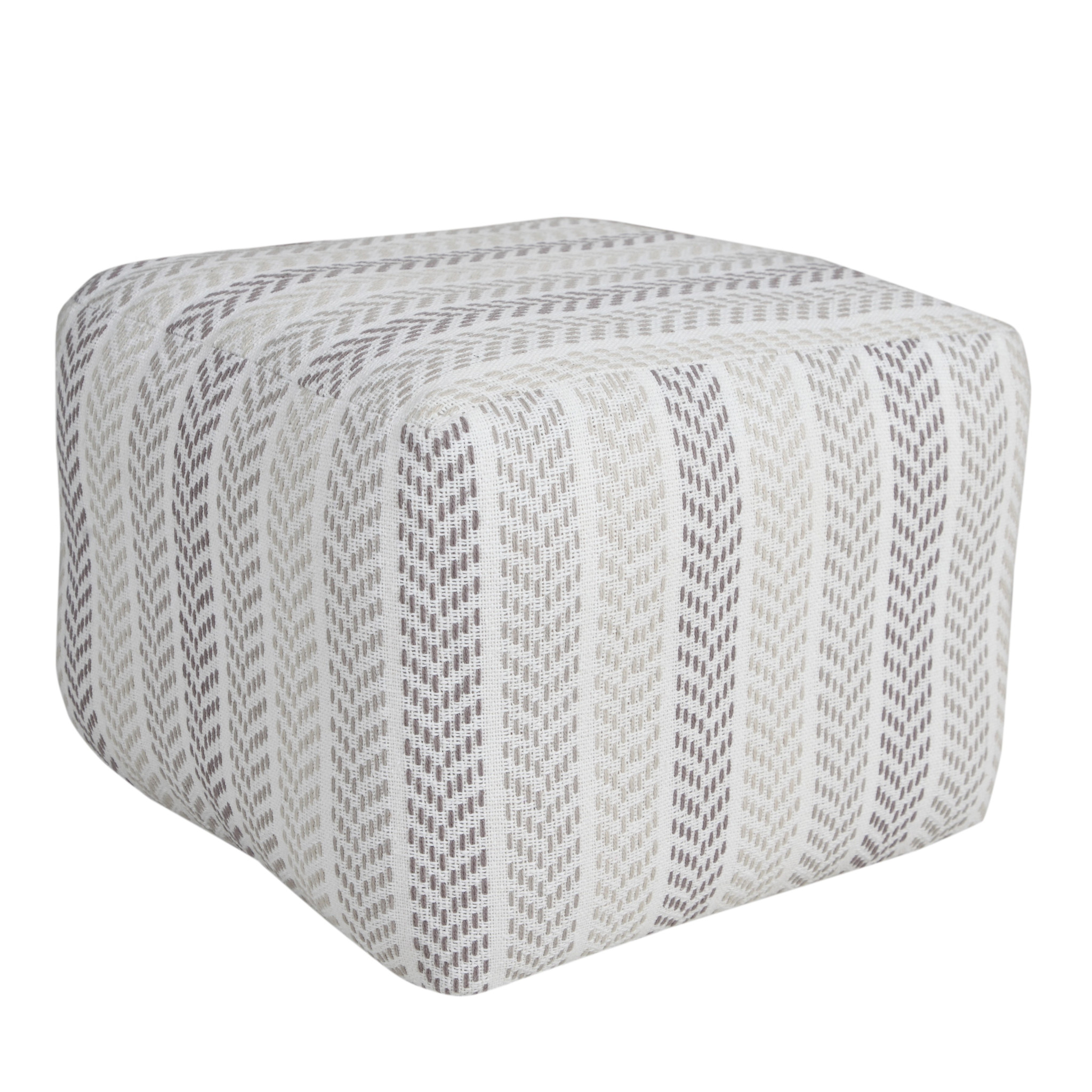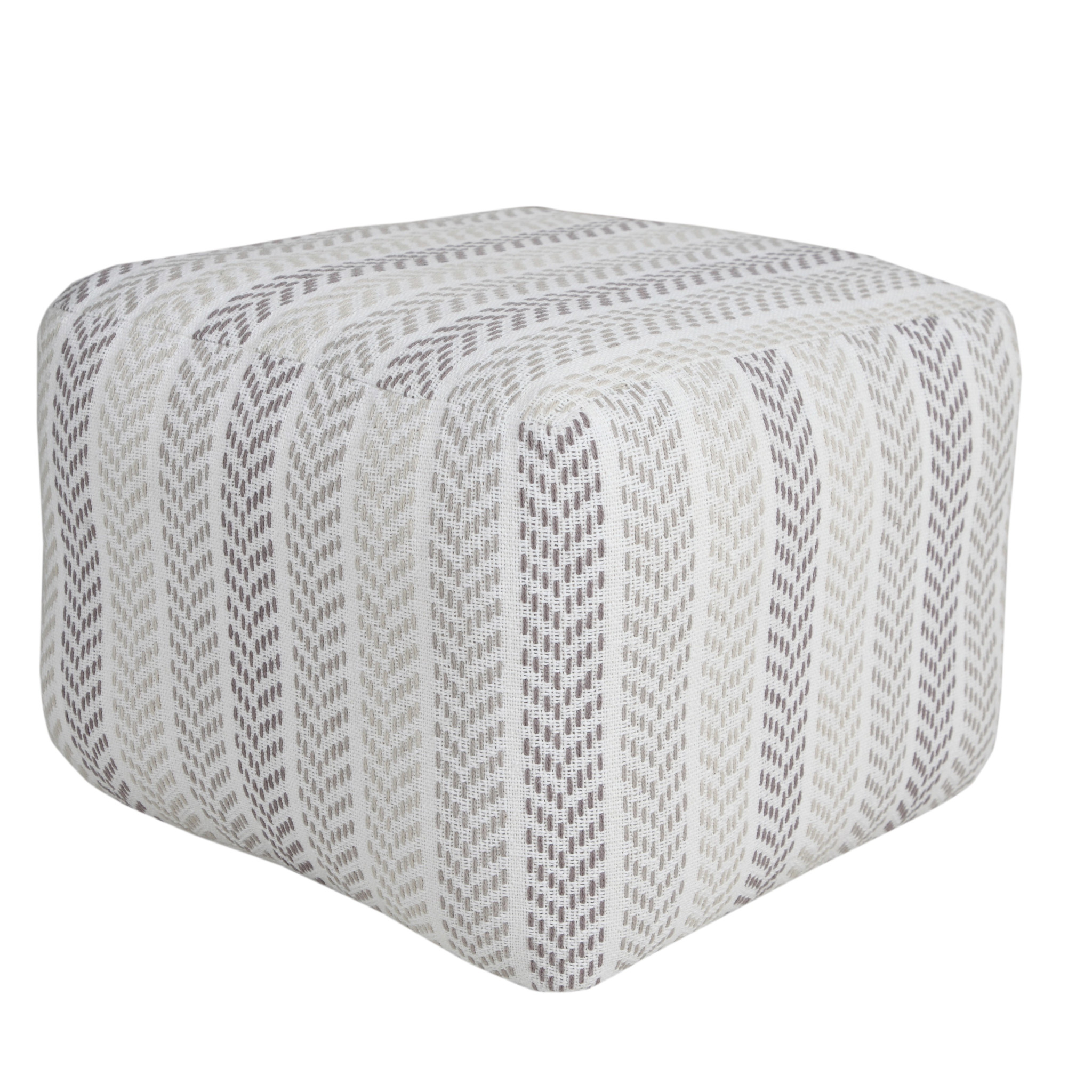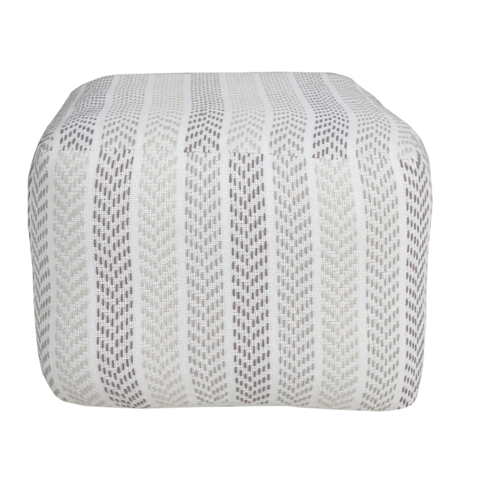 white cotton chevron pouf ottoman, cotton chevron pouf ottoman, chevron pouf ottoman, 18" gray white cotton chevron, gray white cotton chevron pouf |