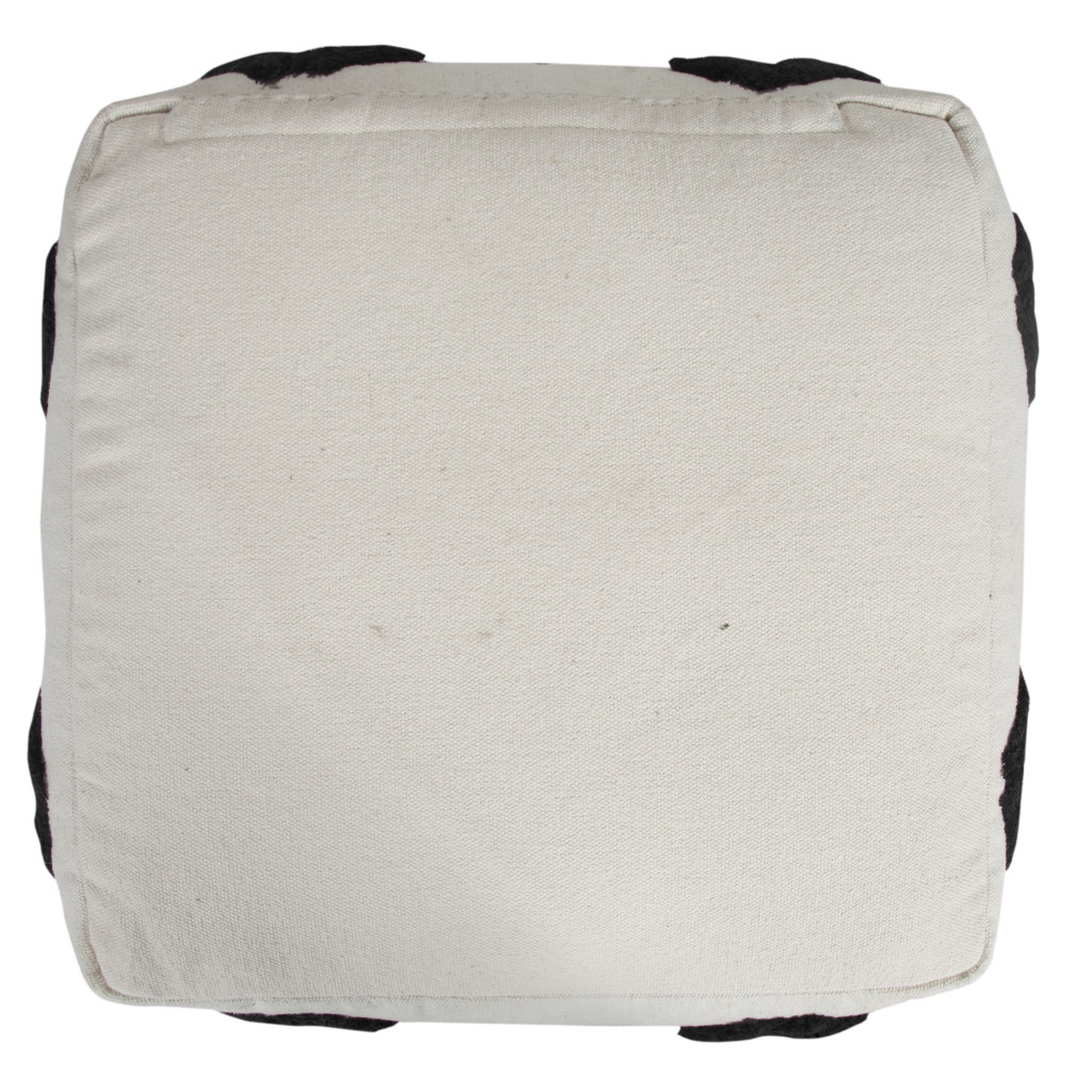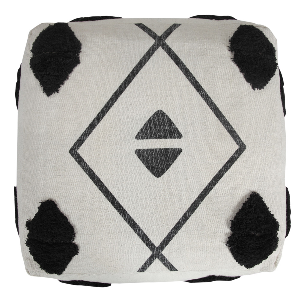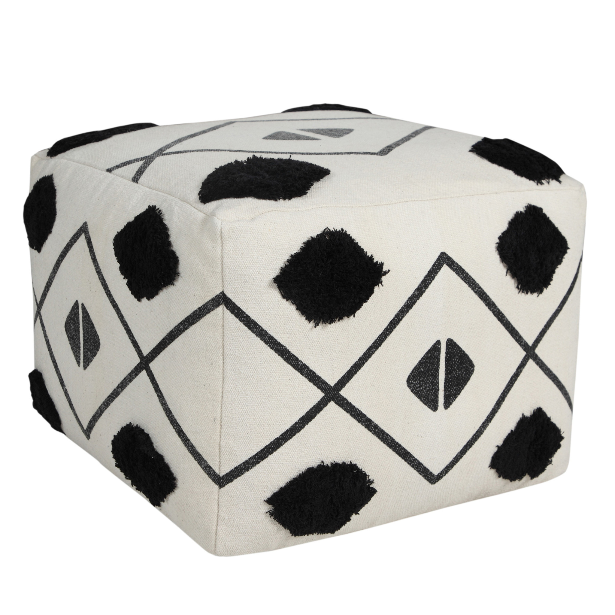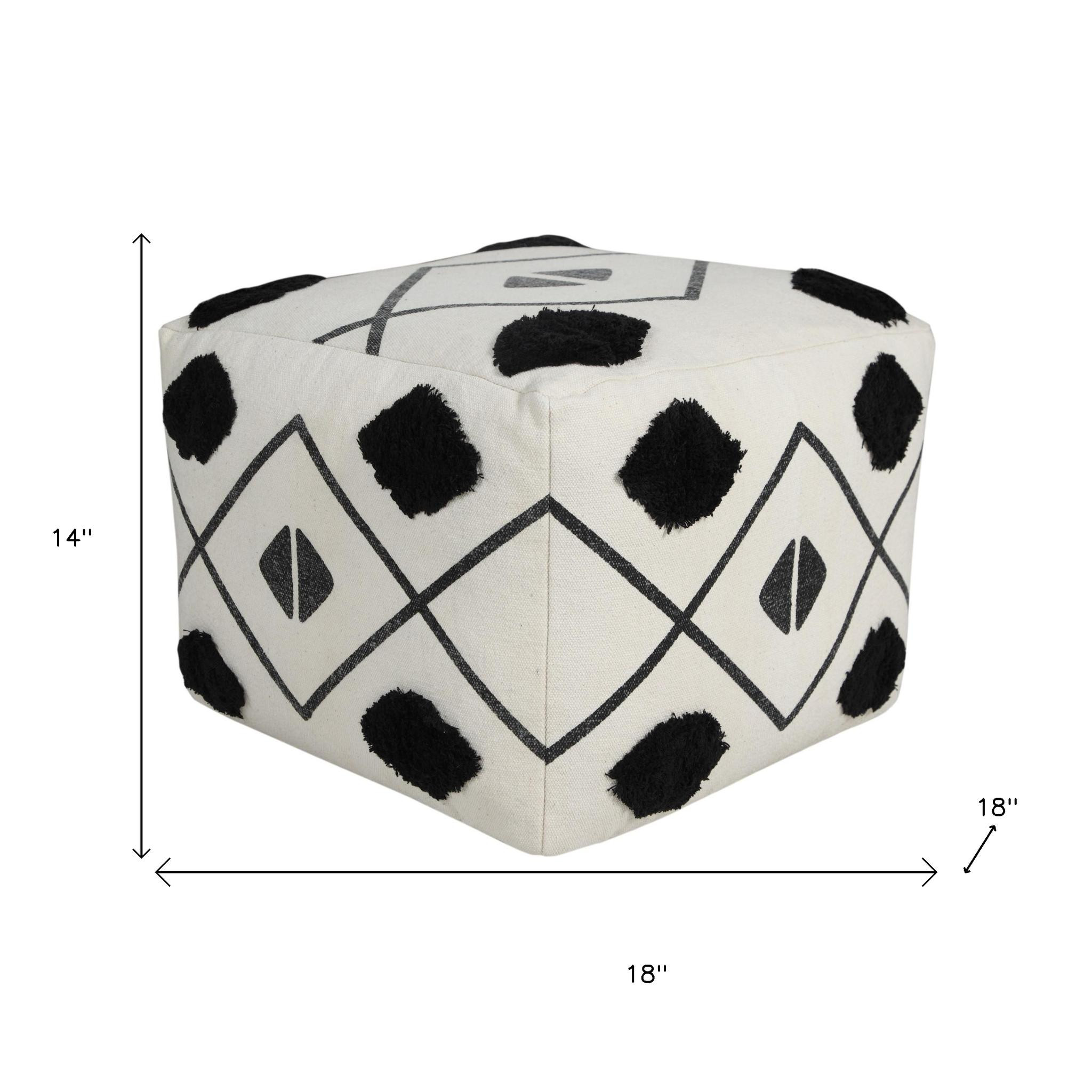 white cotton geometric pouf ottoman, cotton geometric pouf ottoman, geometric pouf ottoman, 18" white cotton geometric pouf, 18" white cotton geometric |