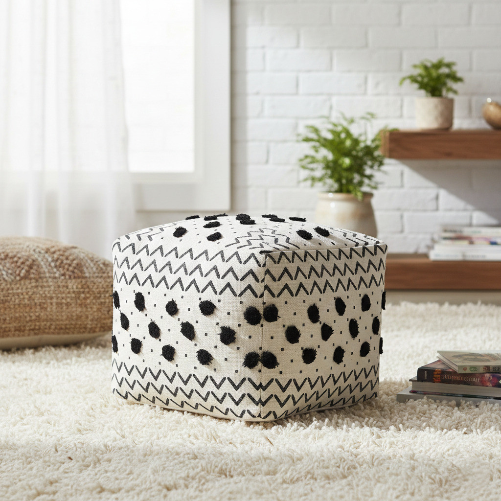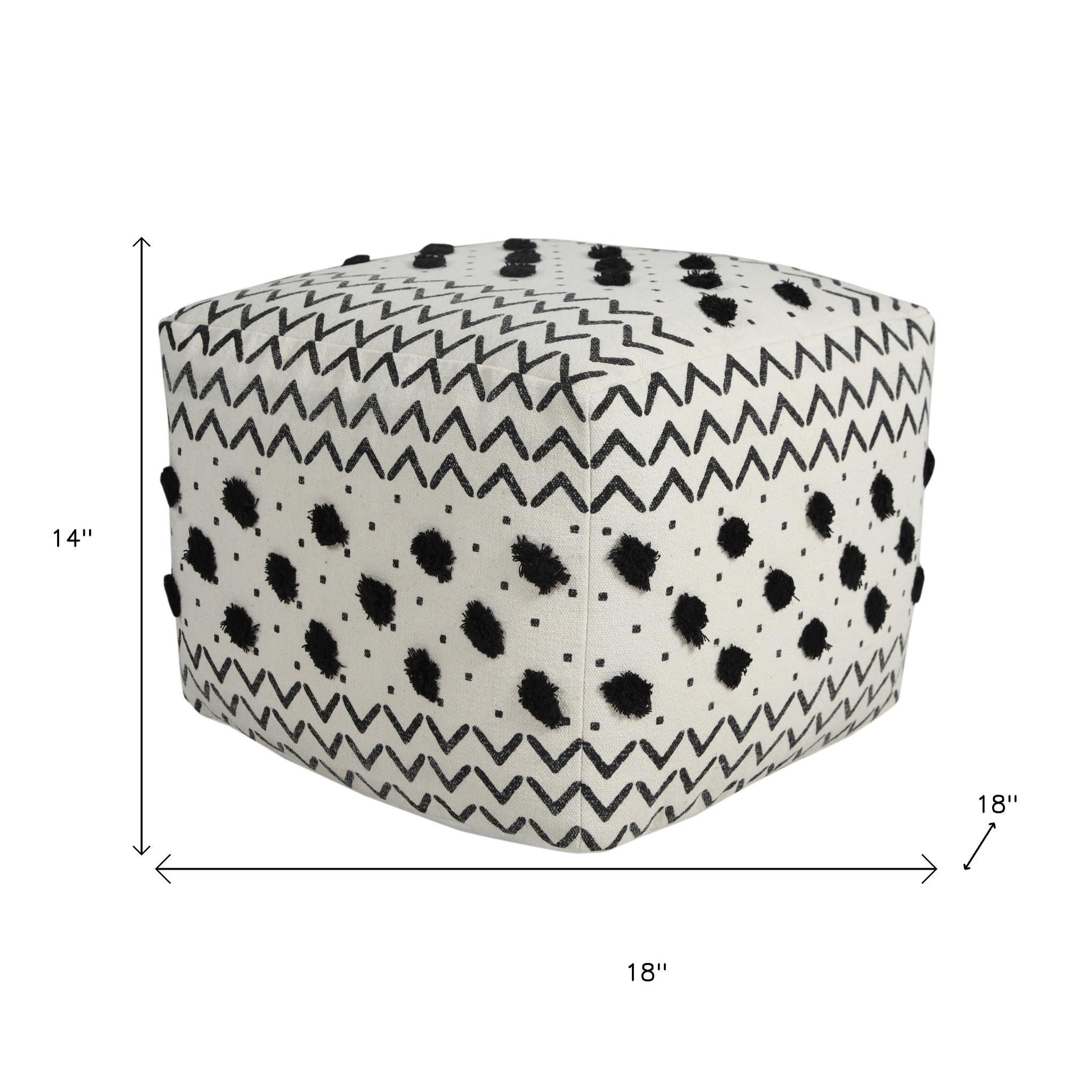 white cotton chevron pouf ottoman, cotton chevron pouf ottoman, chevron pouf ottoman, 18" white cotton chevron pouf, 18" white cotton chevron |