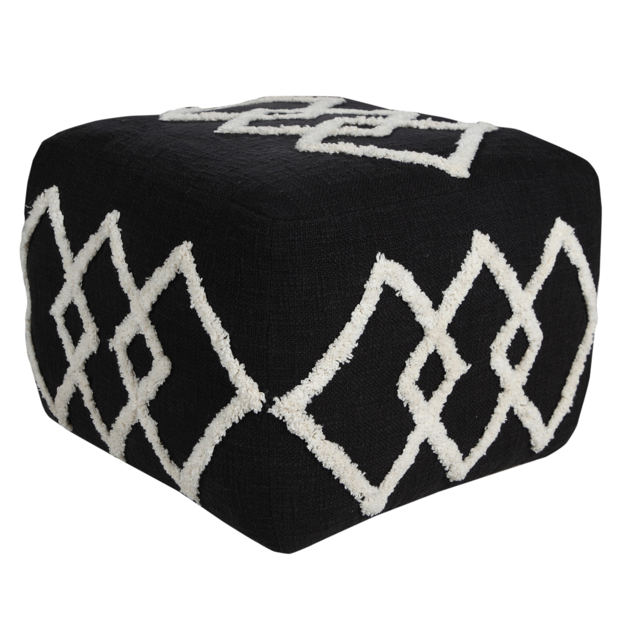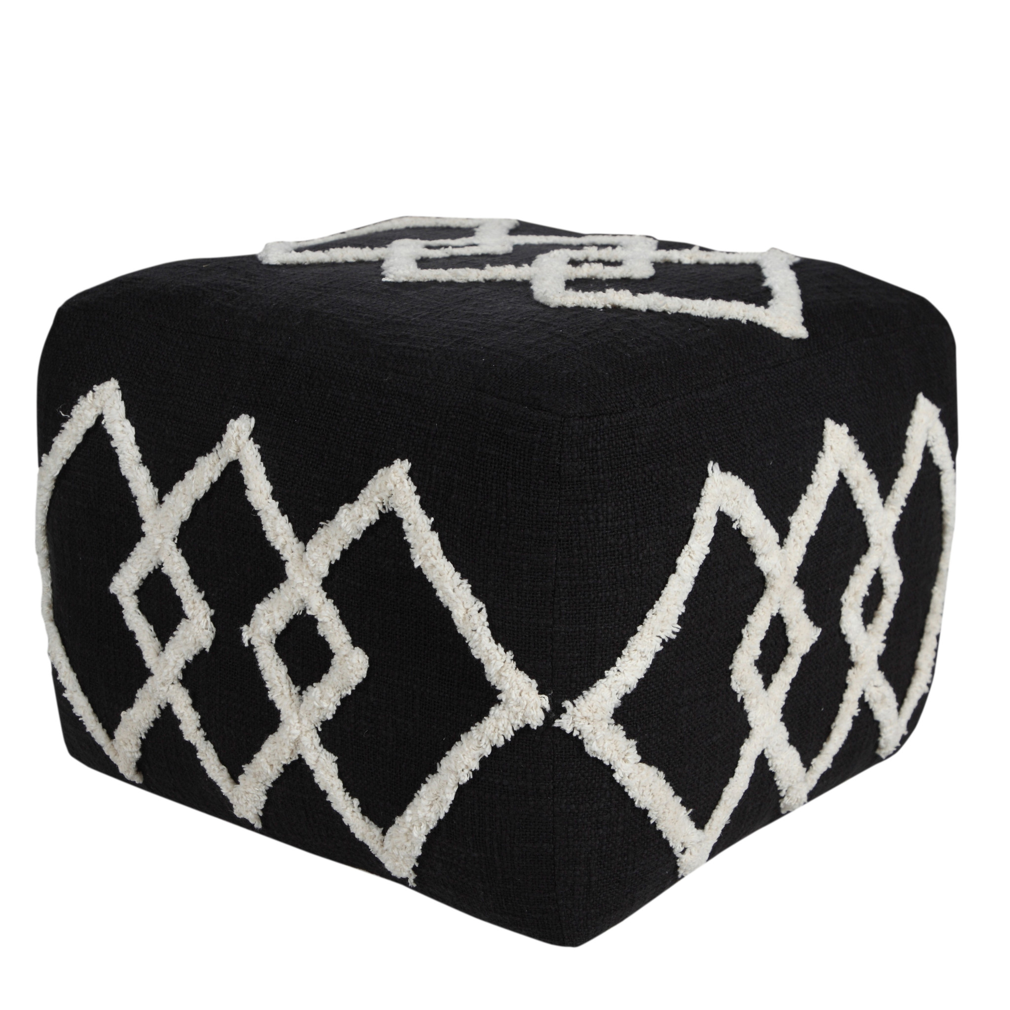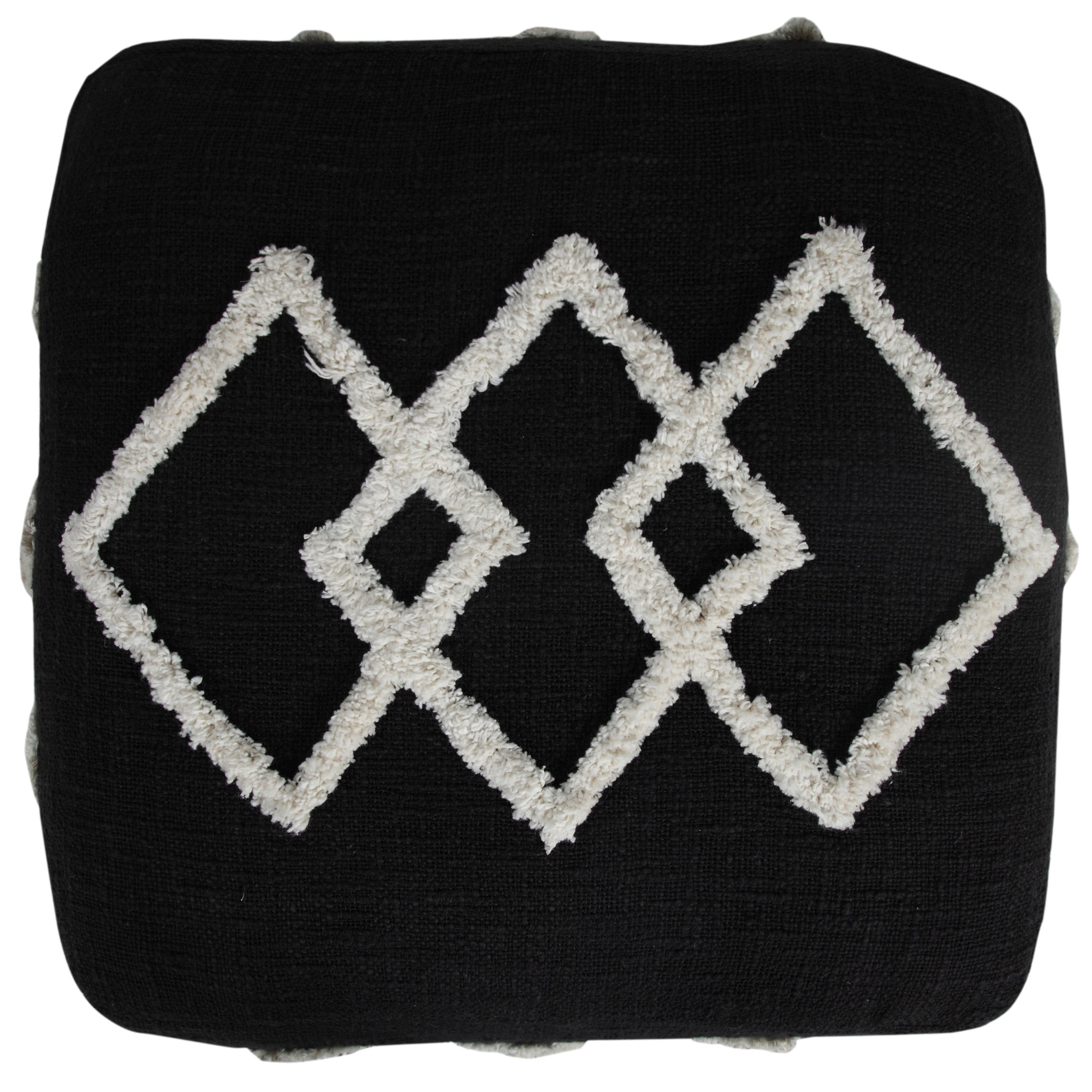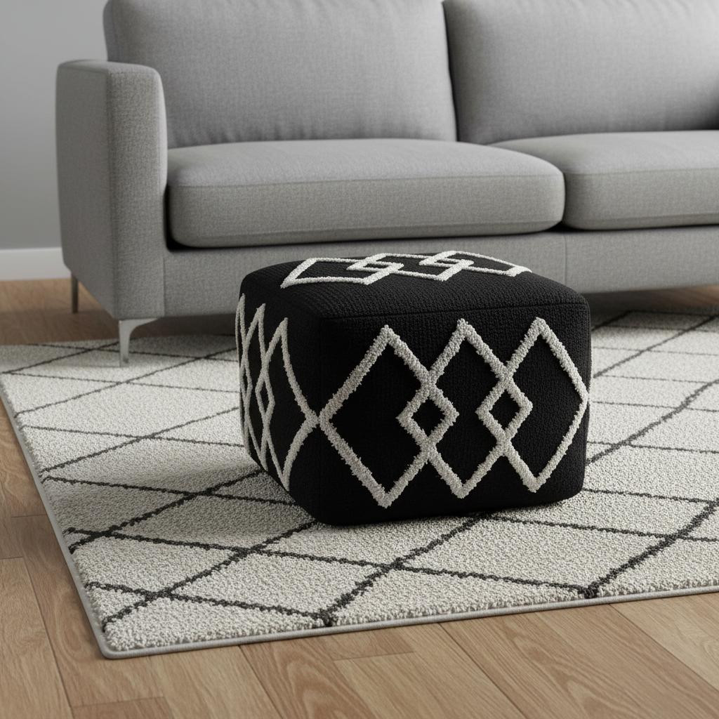 black cotton geometric pouf ottoman, cotton geometric pouf ottoman, geometric pouf ottoman, 18" black cotton geometric pouf, 18" black cotton geometric |