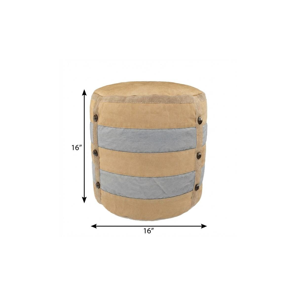 cotton cylinder striped pouf ottoman, cylinder striped pouf ottoman, striped pouf ottoman, tan cotton cylinder striped pouf, 16" tan cotton cylinder |