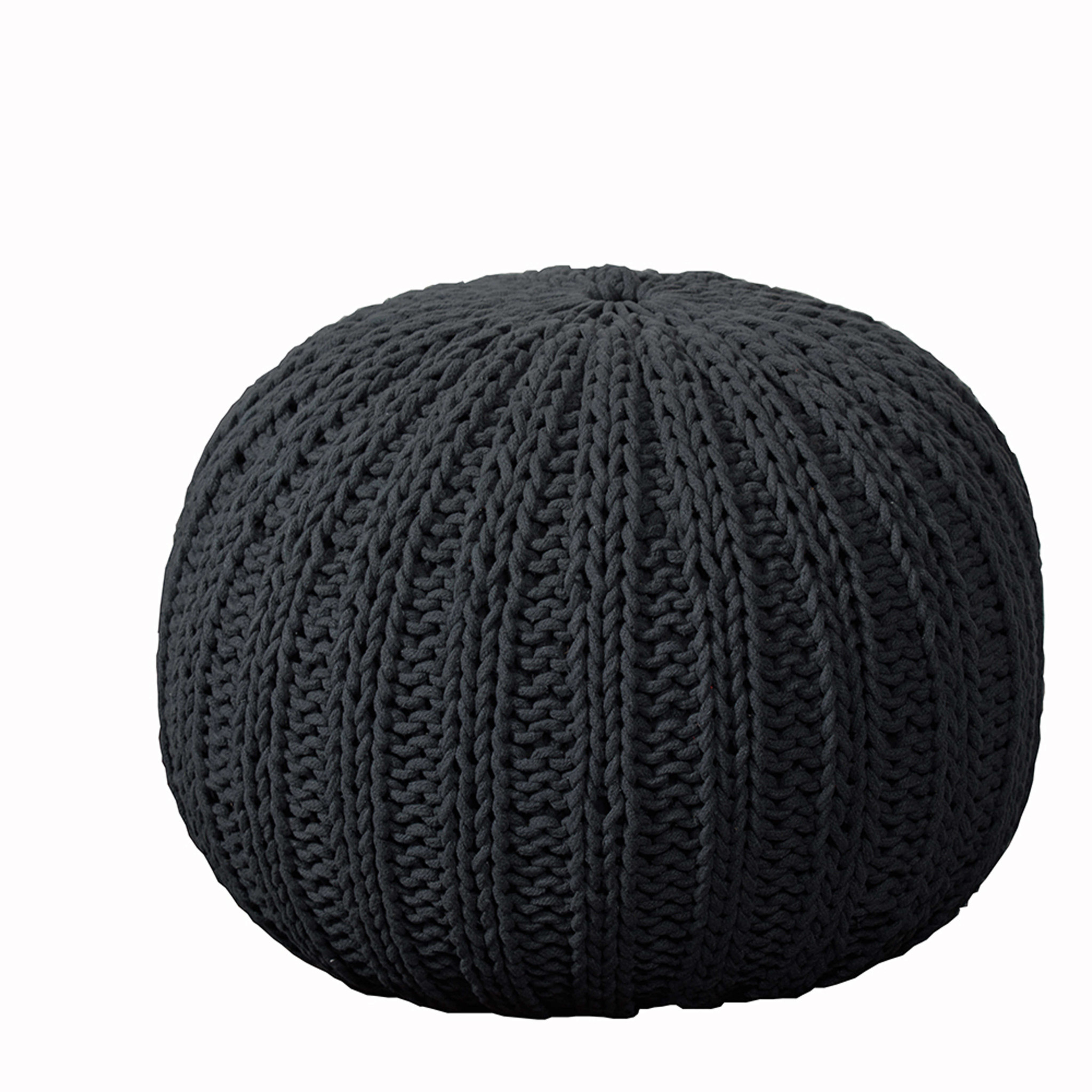 cotton round pouf ottoman, black cotton round pouf ottoman, round pouf ottoman, 20" black cotton round pouf, 20" black cotton round |