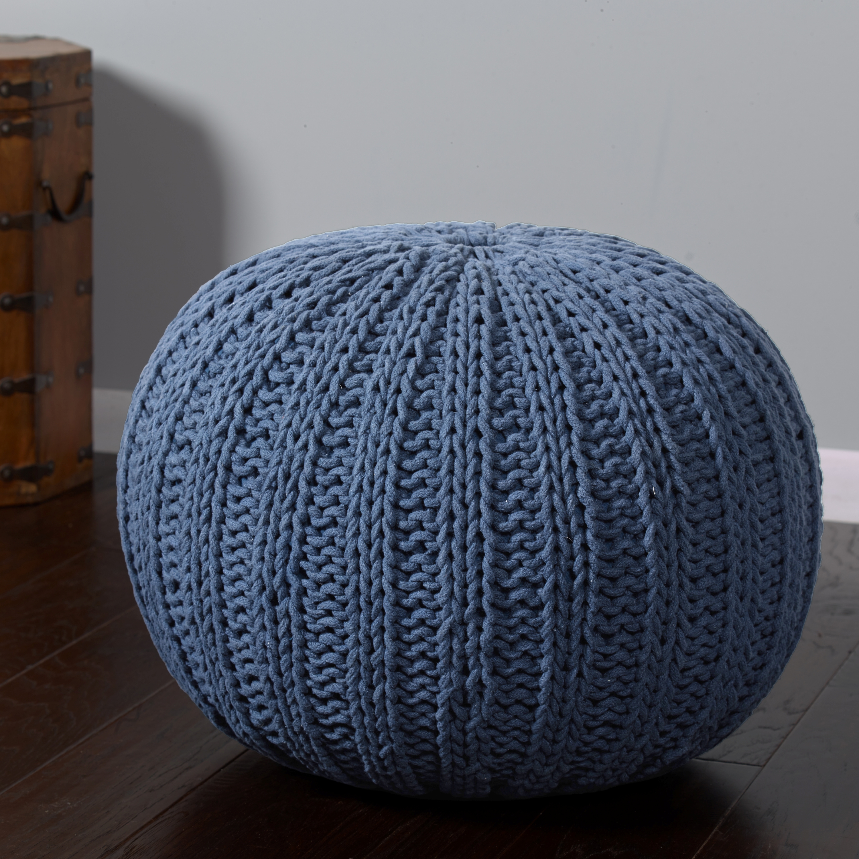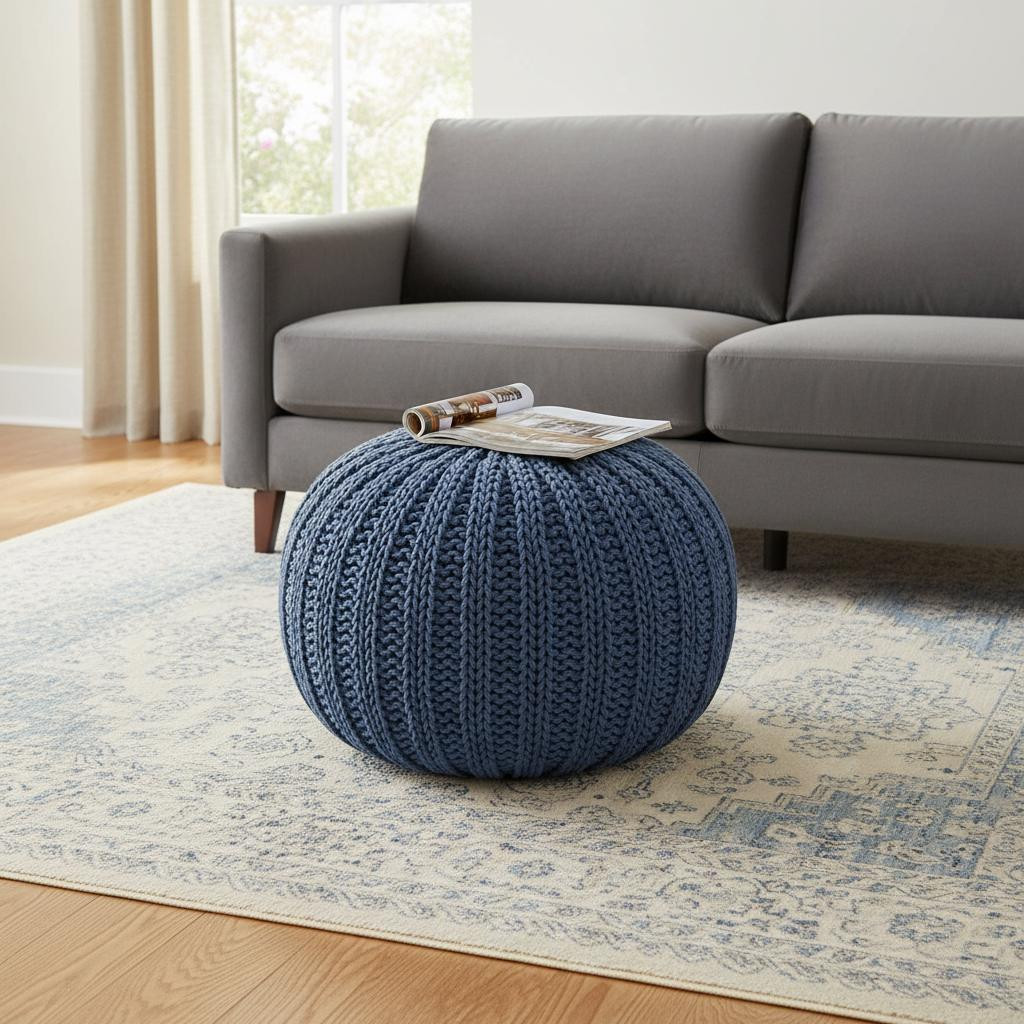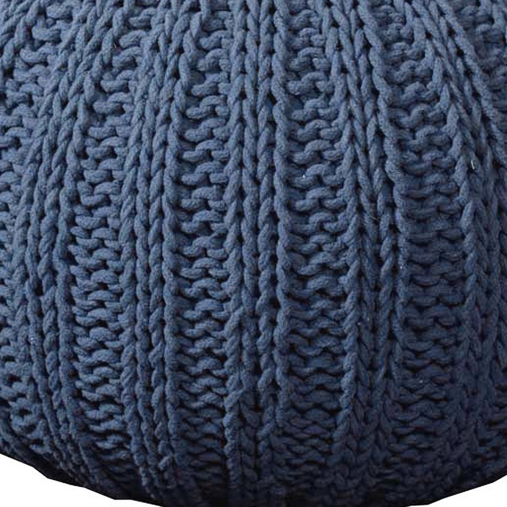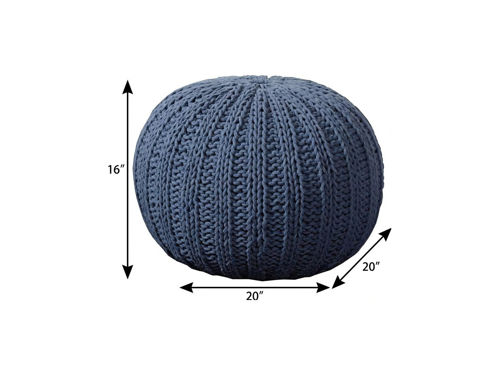 Get ready to relax with this 20-inch blue cotton round pouf ottoman. Add chic style to your space with this fun pouf that not only looks cool but can be a great foot rest or extra seat when needed. Expertly upholstered with padding in a soft solid color 100% cotton, this ottoman is as comfortable as it is good looking. Ottomans are multi-functional additions to your space that add fashion and practical value. 16-inch h x 20-inch w x 20-inch d.