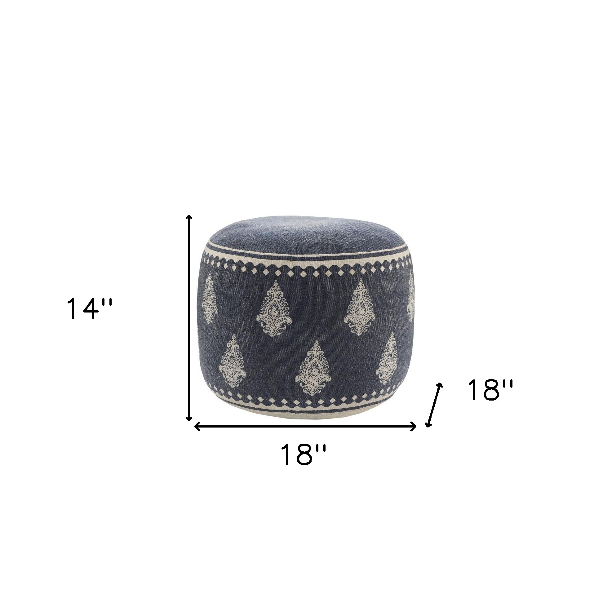 Practicality and fashion mix together with this handy 18-inch blue cotton cylinder paisley pouf ottoman. Add chic style to your space with this fun pouf that not only looks cool but can be a great foot rest or extra seat when needed. Expertly upholstered with padding and soft 100% cotton in a paisley pattern, this ottoman is as comfortable as it is good looking. Easy to blend into most any room, a ottoman is a way to add a good looking accent to your space that can also be practical and useful. 14-inch h x 18-inch w x 18-inch d.