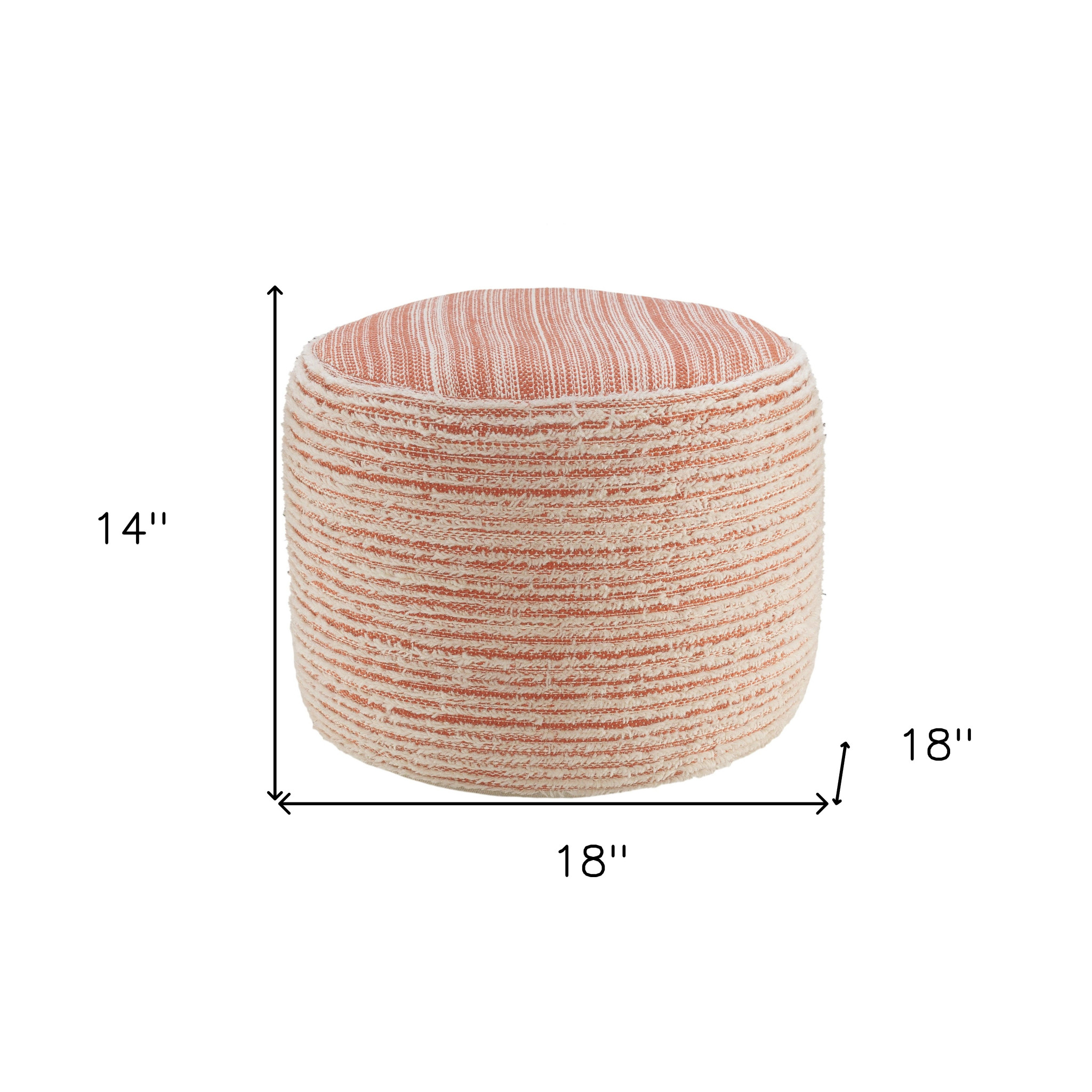 Get ready to relax with this 18-inch pink fabric cylinder striped pouf ottoman. Add chic style to your space with this fun pouf that not only looks cool but can be a great foot rest or extra seat when needed. Expertly upholstered with padding and soft 100% polyester in a striped pattern, this ottoman is as comfortable as it is good looking. Easy to blend into most any room, a ottoman is a way to add a good looking accent to your space that can also be practical and useful. 14-inch h x 18-inch w x 18-inch d.