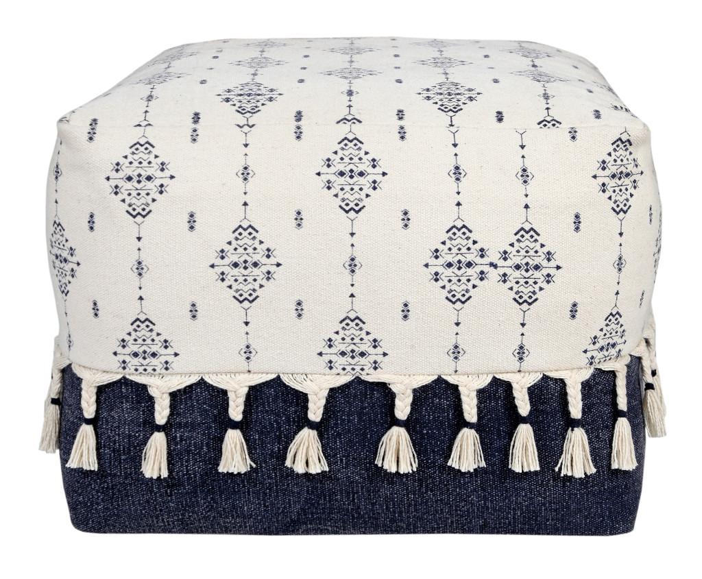blue cotton medallion pouf ottoman, cotton medallion pouf ottoman, medallion pouf ottoman, navy blue cotton medallion, navy blue cotton medallion pouf |