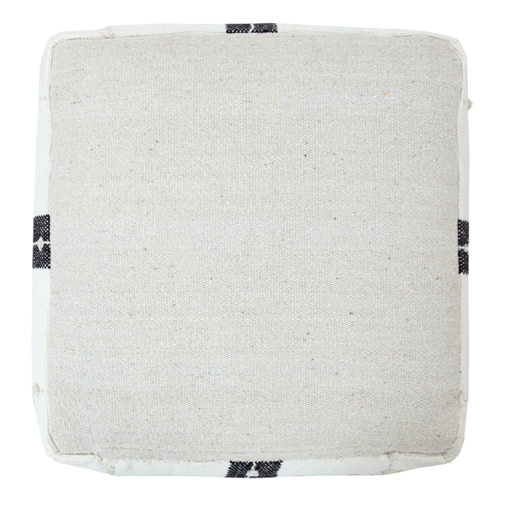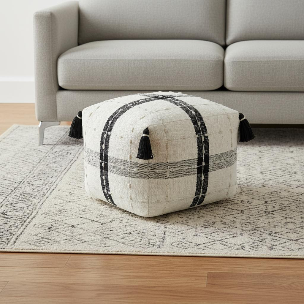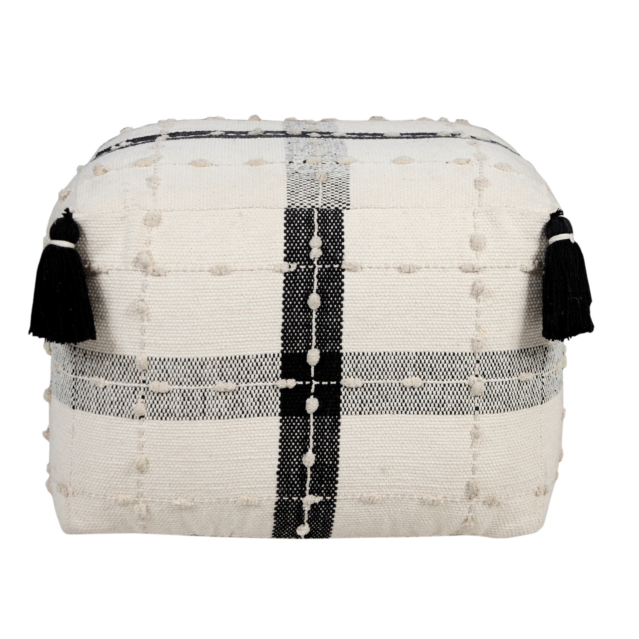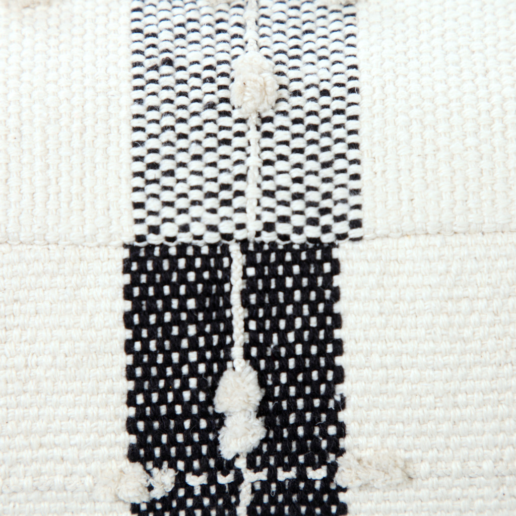 black cotton striped pouf ottoman, cotton striped pouf ottoman, striped pouf ottoman, 18" black cotton striped pouf, 18" black cotton striped |