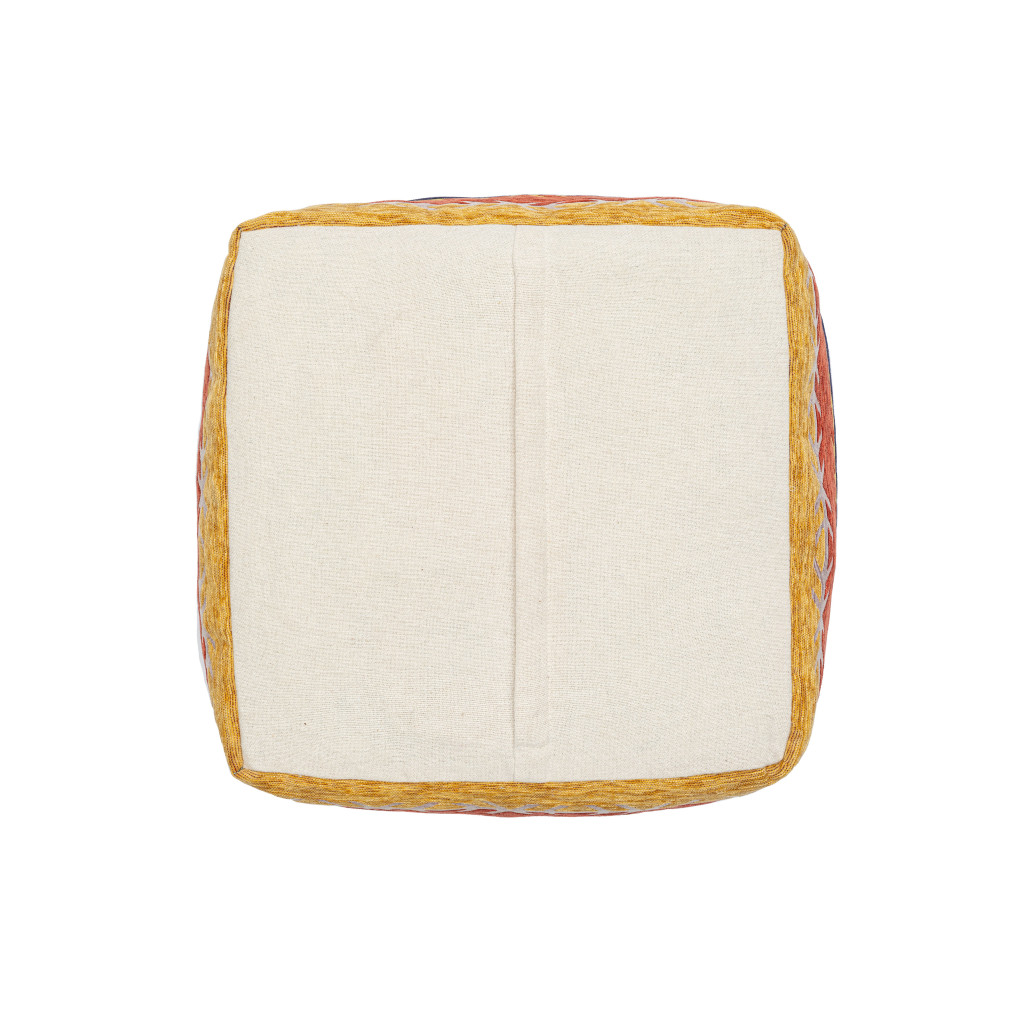 Practicality and fashion mix together with this handy 18-inch blue and orange polyester blend striped pouf ottoman. Add chic style to your space with this fun pouf that not only looks cool but can be a great foot rest or extra seat when needed. Expertly upholstered with padding and soft polyester blend in a striped pattern, this ottoman is as comfortable as it is good looking. Ottomans are multi-functional additions to your space that add fashion and practical value. 18-inch h x 18-inch w x 18-inch d.