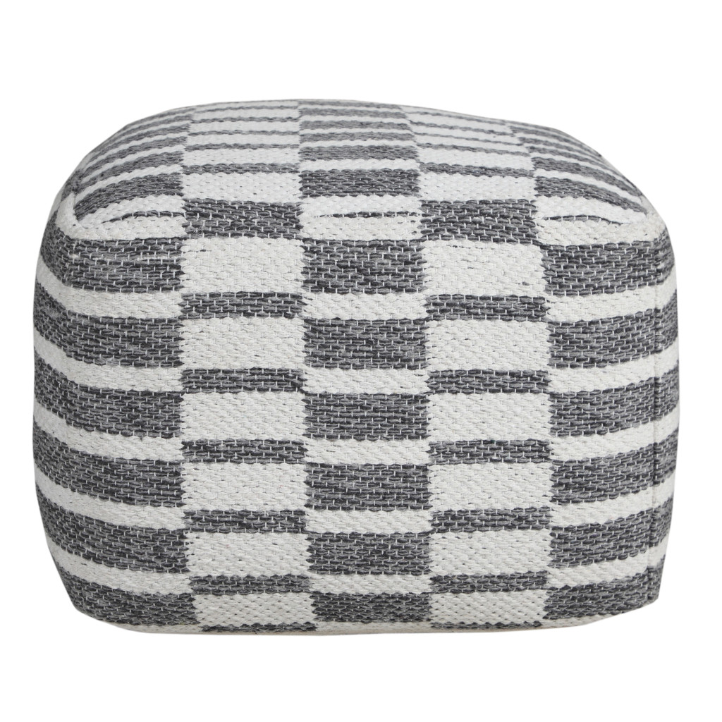 gray cotton geometric pouf ottoman, cotton geometric pouf ottoman, geometric pouf ottoman, 18" gray cotton geometric pouf, 18" gray cotton geometric |