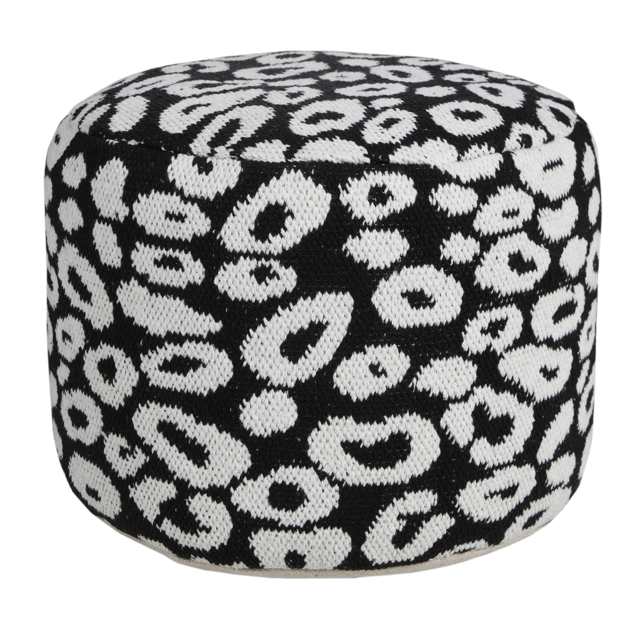 Add a good looking decorative accent to your space that is also practical for seating. Add chic style to your space with this fun pouf that not only looks cool but can be a great foot rest or extra seat when needed. Expertly upholstered with padding and soft cotton blend in a abstract pattern, this ottoman is as comfortable as it is good looking. Ottomans are multi-functional additions to your space that add fashion and practical value. 14-inch h x 18-inch w x 18-inch d.