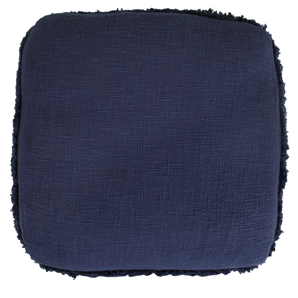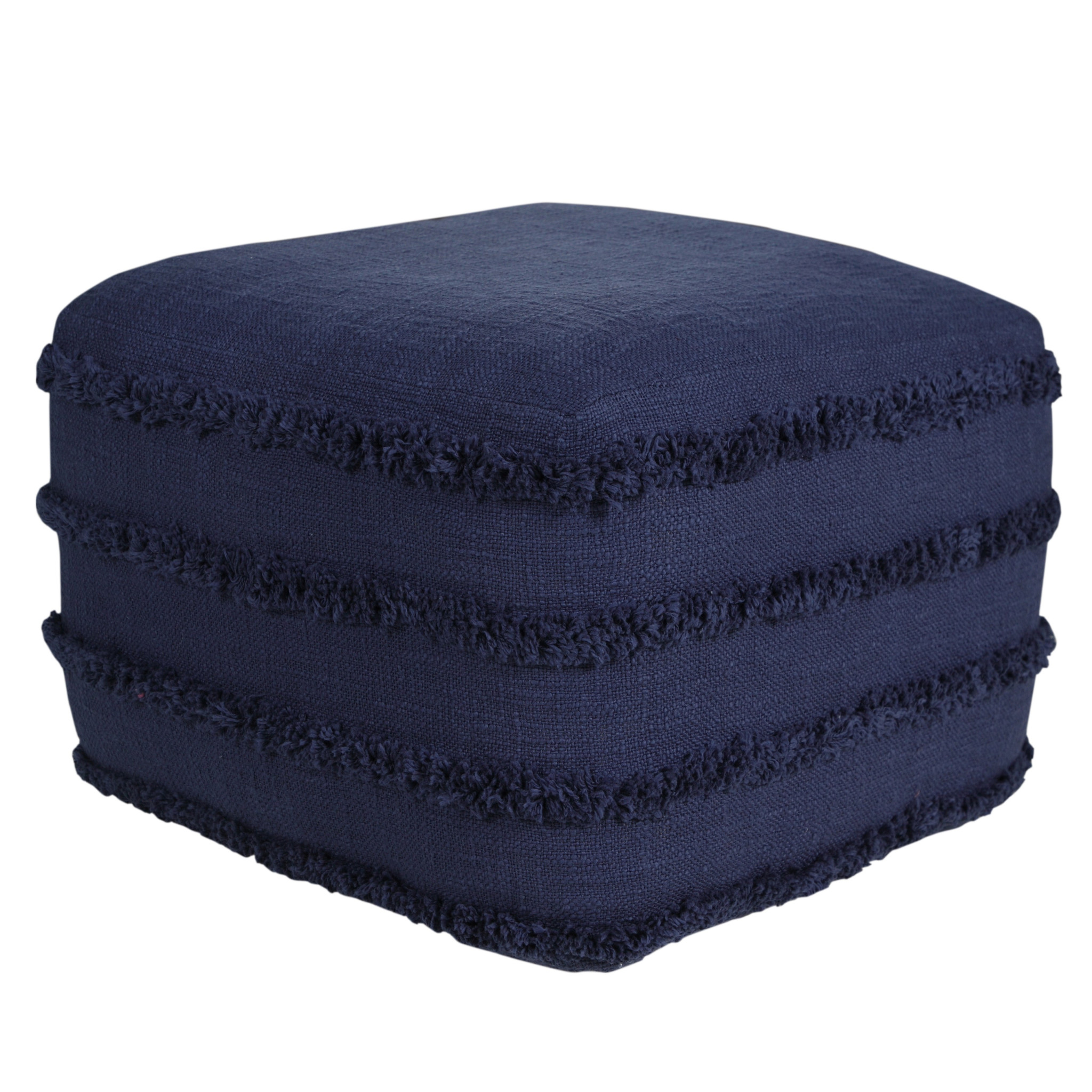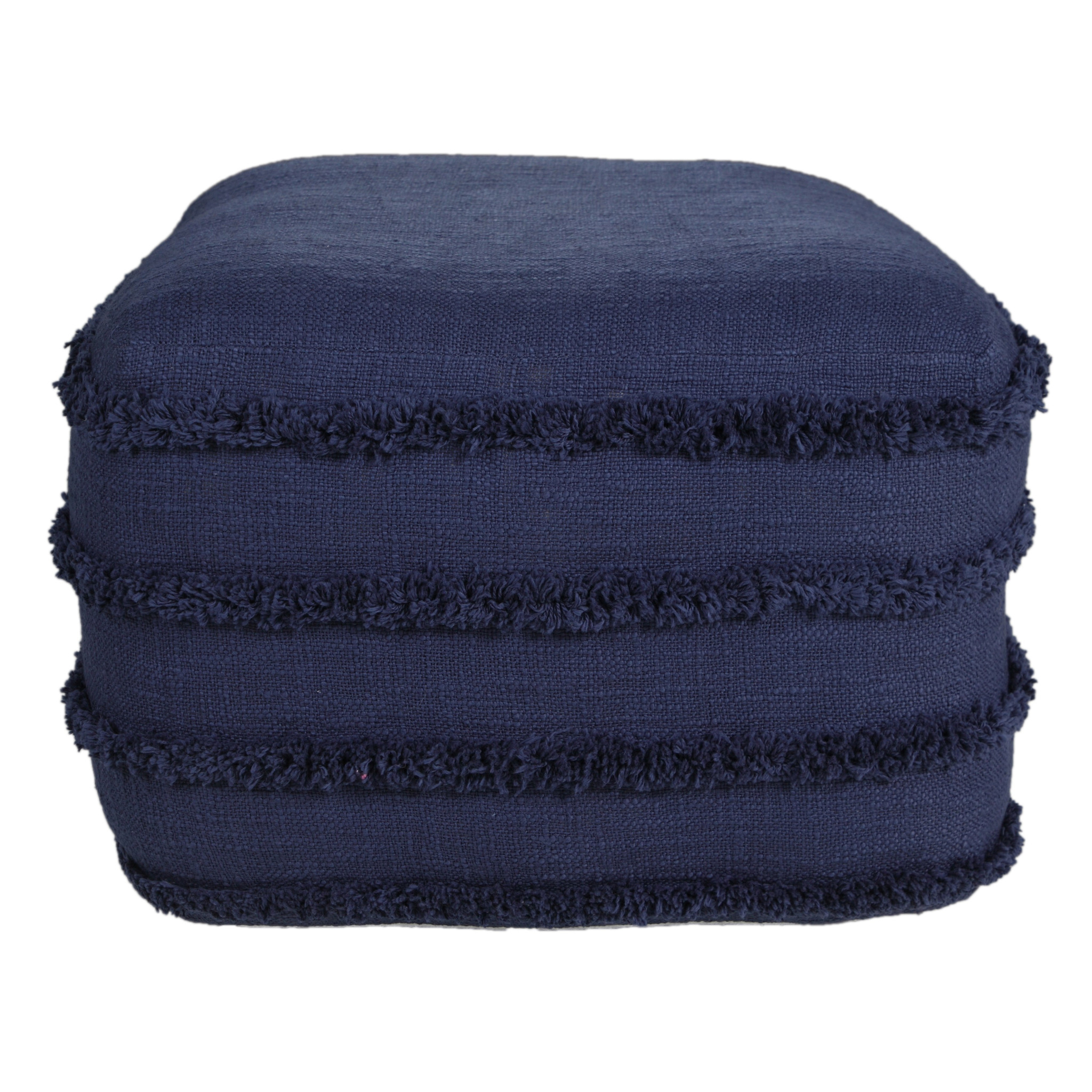 Get ready to relax with this 18-inch blue cotton striped pouf ottoman. Add chic style to your space with this fun pouf that not only looks cool but can be a great foot rest or extra seat when needed. Expertly upholstered with padding and soft 100% cotton in a striped pattern, this ottoman is as comfortable as it is good looking. Easy to blend into most any room, a ottoman is a way to add a good looking accent to your space that can also be practical and useful. 14-inch h x 18-inch w x 18-inch d.