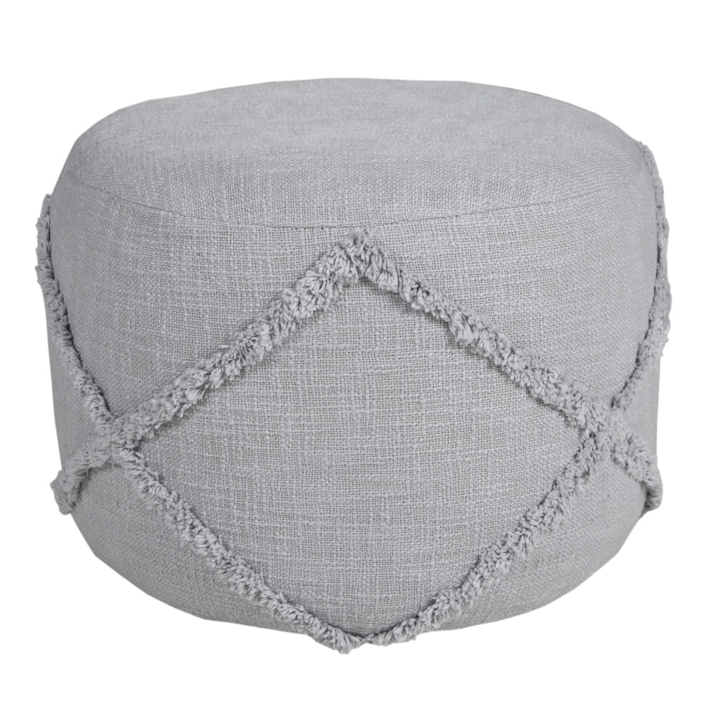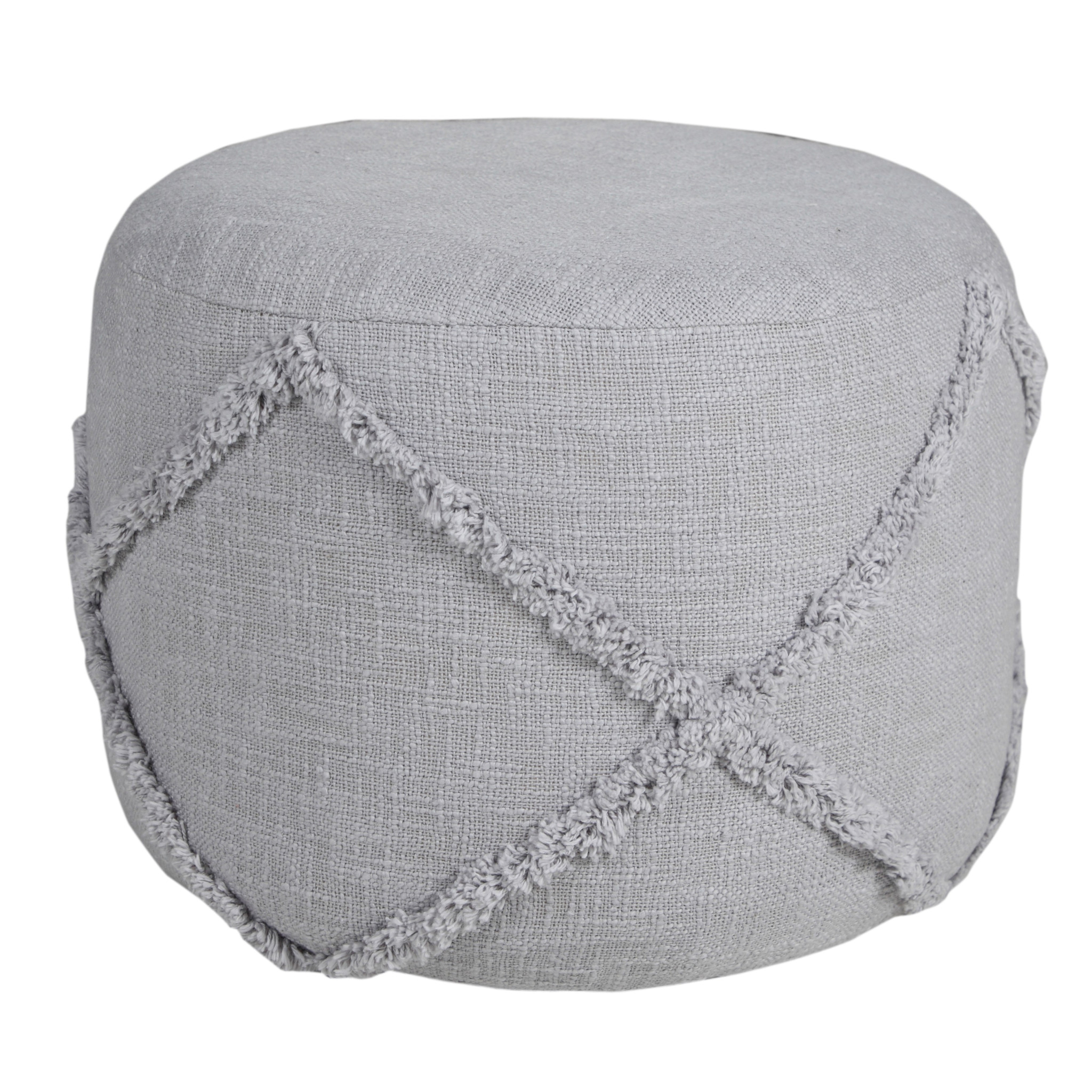 cotton cylinder geometric pouf ottoman, cylinder geometric pouf ottoman, geometric pouf ottoman, gray cotton cylinder geometric pouf, 18" gray cotton cylinder geometric |