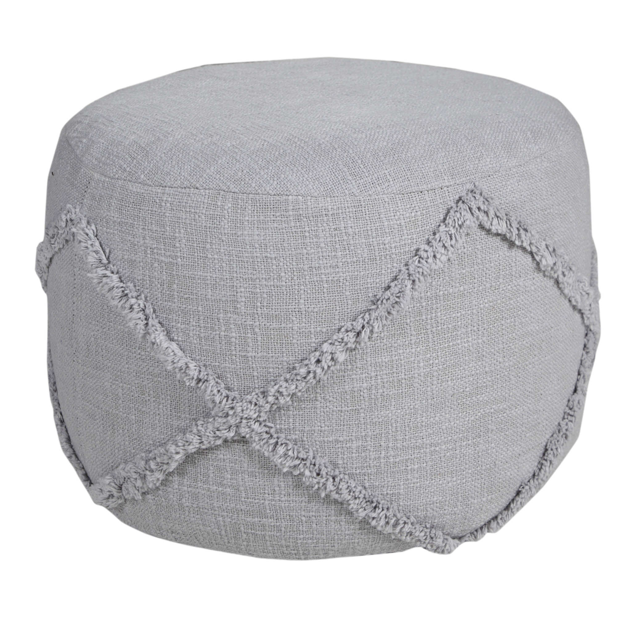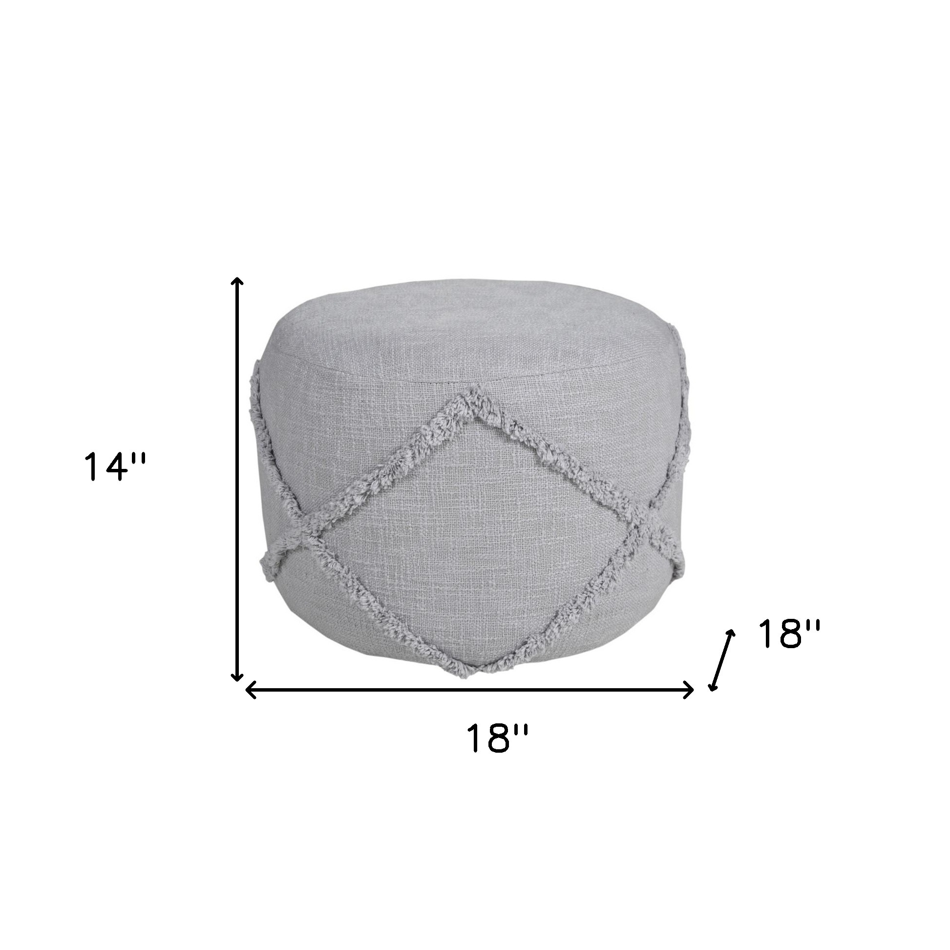 Practicality and fashion mix together with this handy 18-inch gray cotton cylinder geometric pouf ottoman. Add chic style to your space with this fun pouf that not only looks cool but can be a great foot rest or extra seat when needed. Expertly upholstered with padding and soft 100% cotton in a geometric pattern, this ottoman is as comfortable as it is good looking. Ottomans are multi-functional additions to your space that add fashion and practical value. 14-inch h x 18-inch w x 18-inch d.