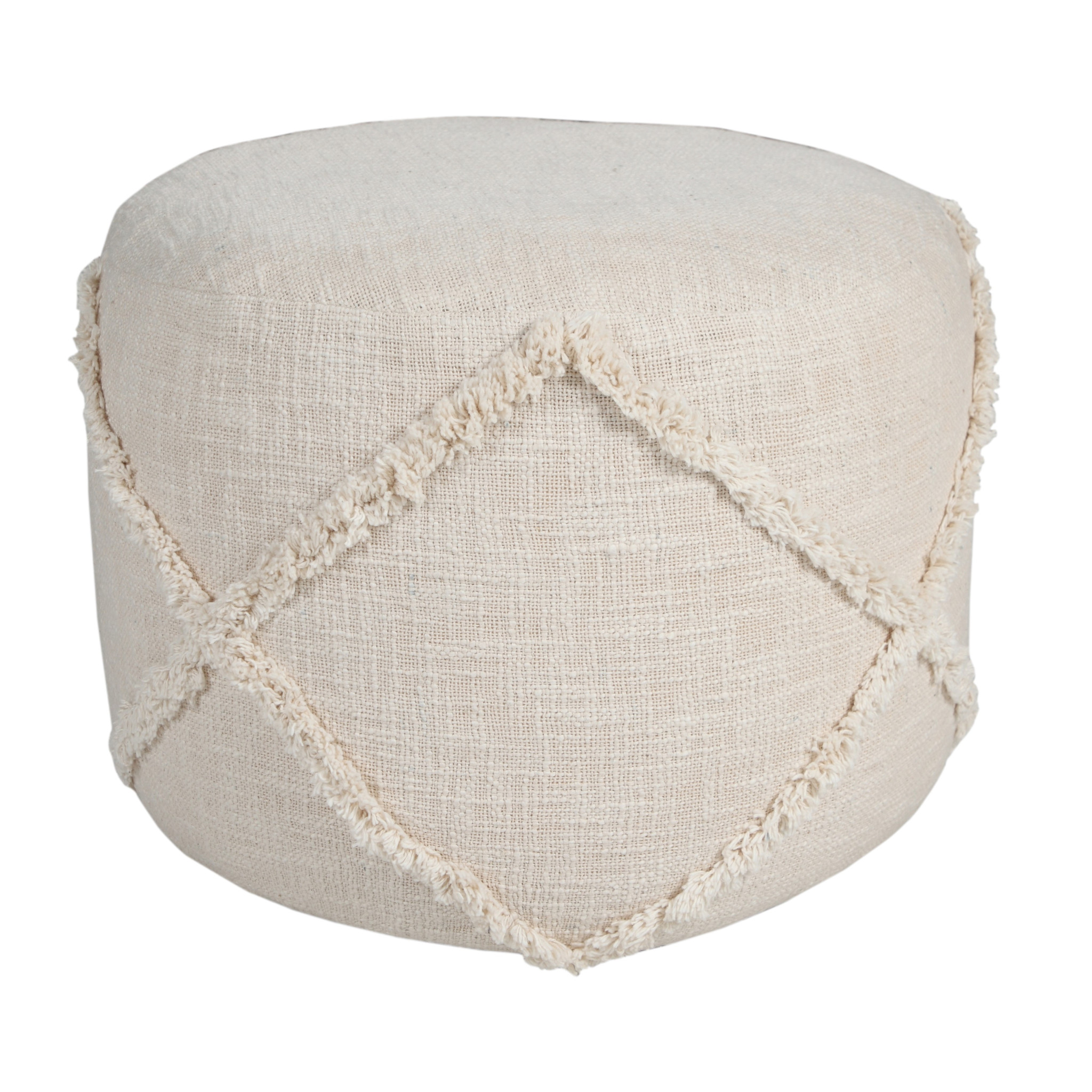 cotton cylinder geometric pouf ottoman, cylinder geometric pouf ottoman, geometric pouf ottoman, 18" cream cotton cylinder geometric, cream cotton cylinder geometric pouf |