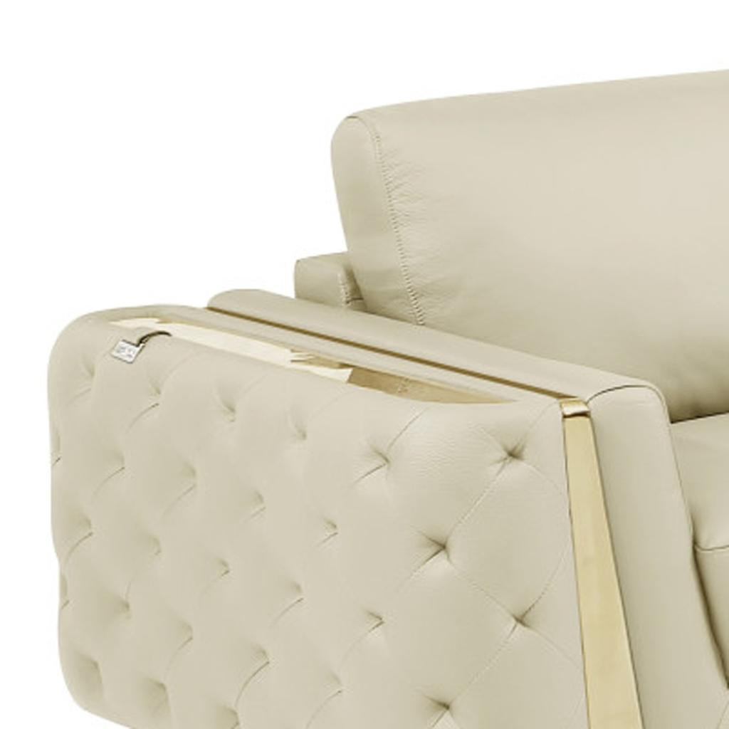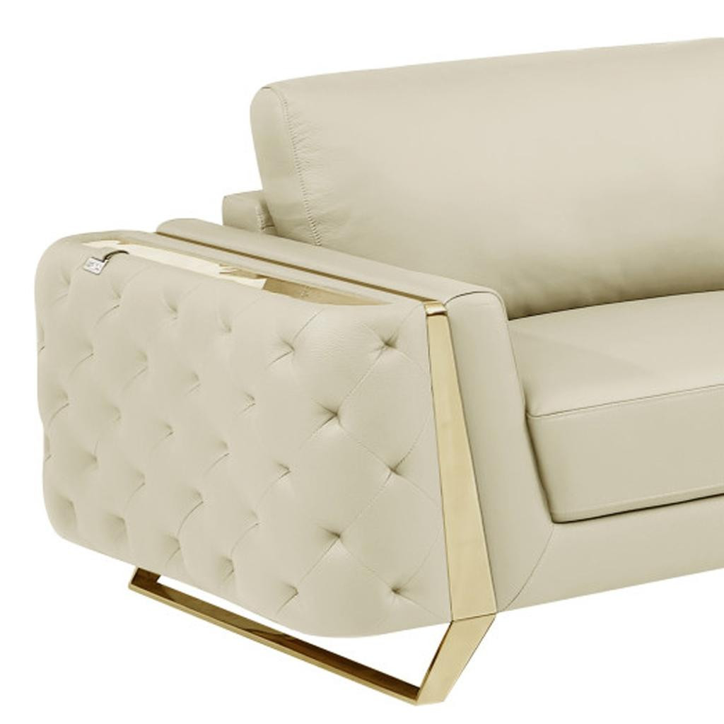 Prepare to amaze even the most discerning critics with our two piece indoor beige italian leather five person seating set - the epitome of indoor seating that will leave them speechless. Elevate your living space with durable, comfortable, and luxurious leather upholstery. The presence of coil spring seat construction helps distribute weight evenly, reducing pressure points and enhancing overall comfort by minimizing the strain on specific areas of the body. The inclusion of a loveseat into your mix allows a fashionable seating option in a compact design. Chock full of value, this set has it all. 33.5-inch H x 90-inch W x 39-inch D