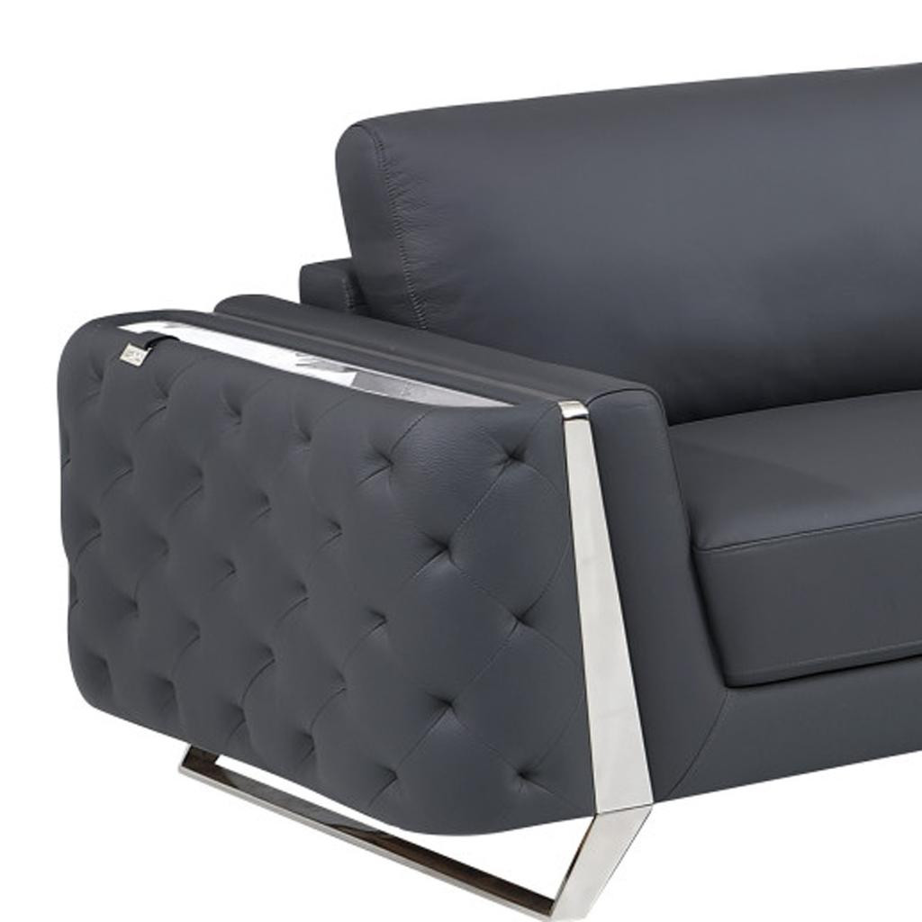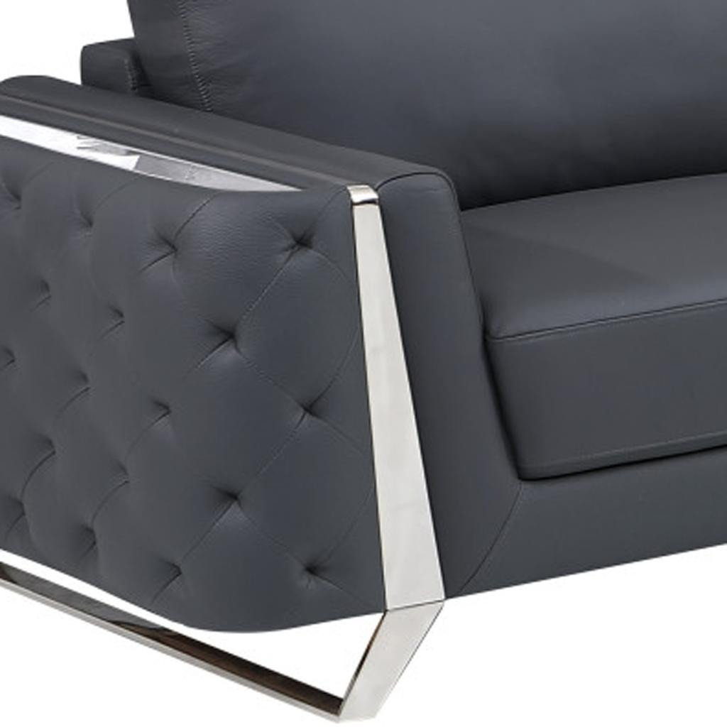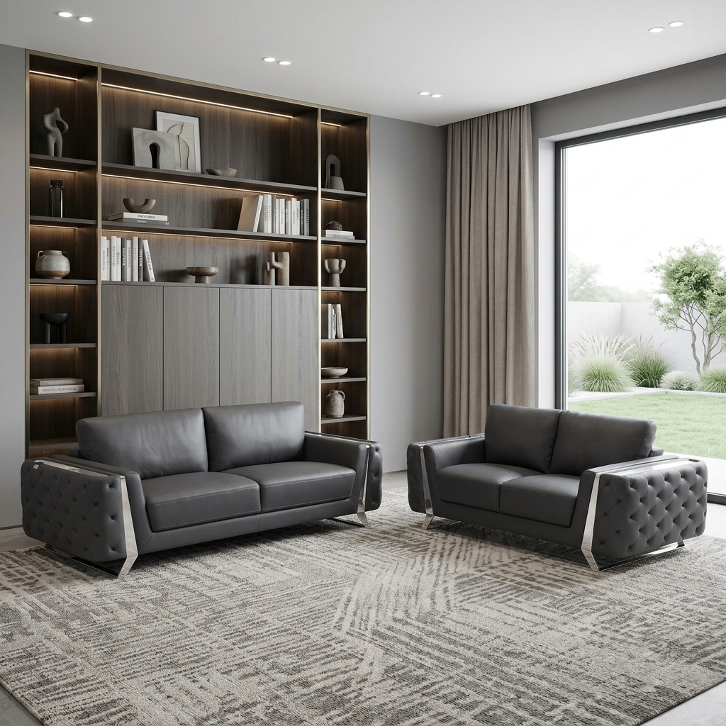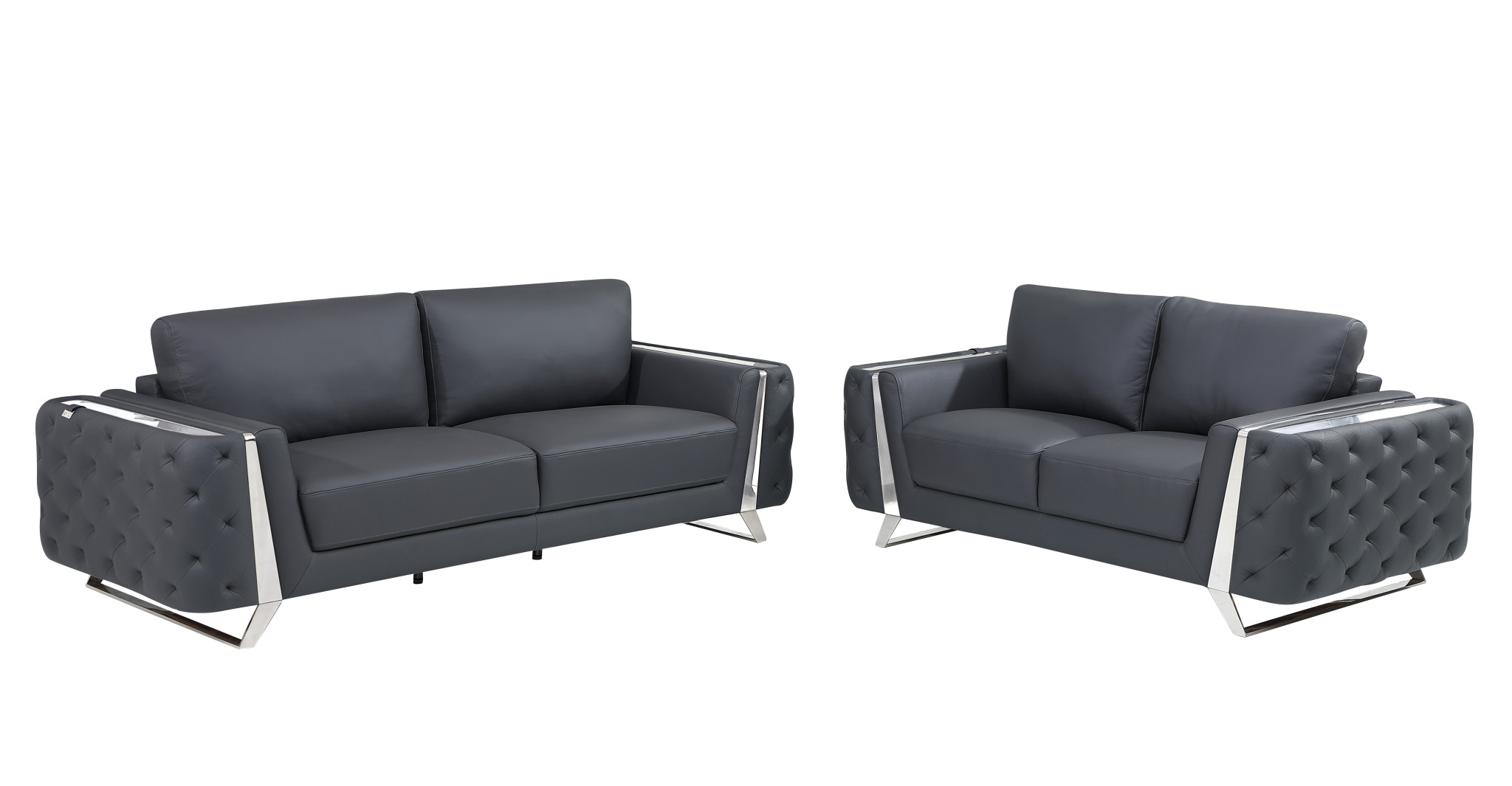 Step into a world of unparalleled seating comfort that is sure to dazzle even the toughest critic with our remarkable two piece indoor dark gray italian leather five person seating set. Upholstered in supple and luxurious genuine leather, this set has a rich and warm appeal. Coil spring seat construction provides excellent comfort by offering a responsive and supportive seating experience, gently contouring to the body's natural curves. The inclusion of a loveseat into your mix allows a fashionable seating option in a compact design. Chock full of value, this set has it all. 33.5-inch H x 90-inch W x 39-inch D