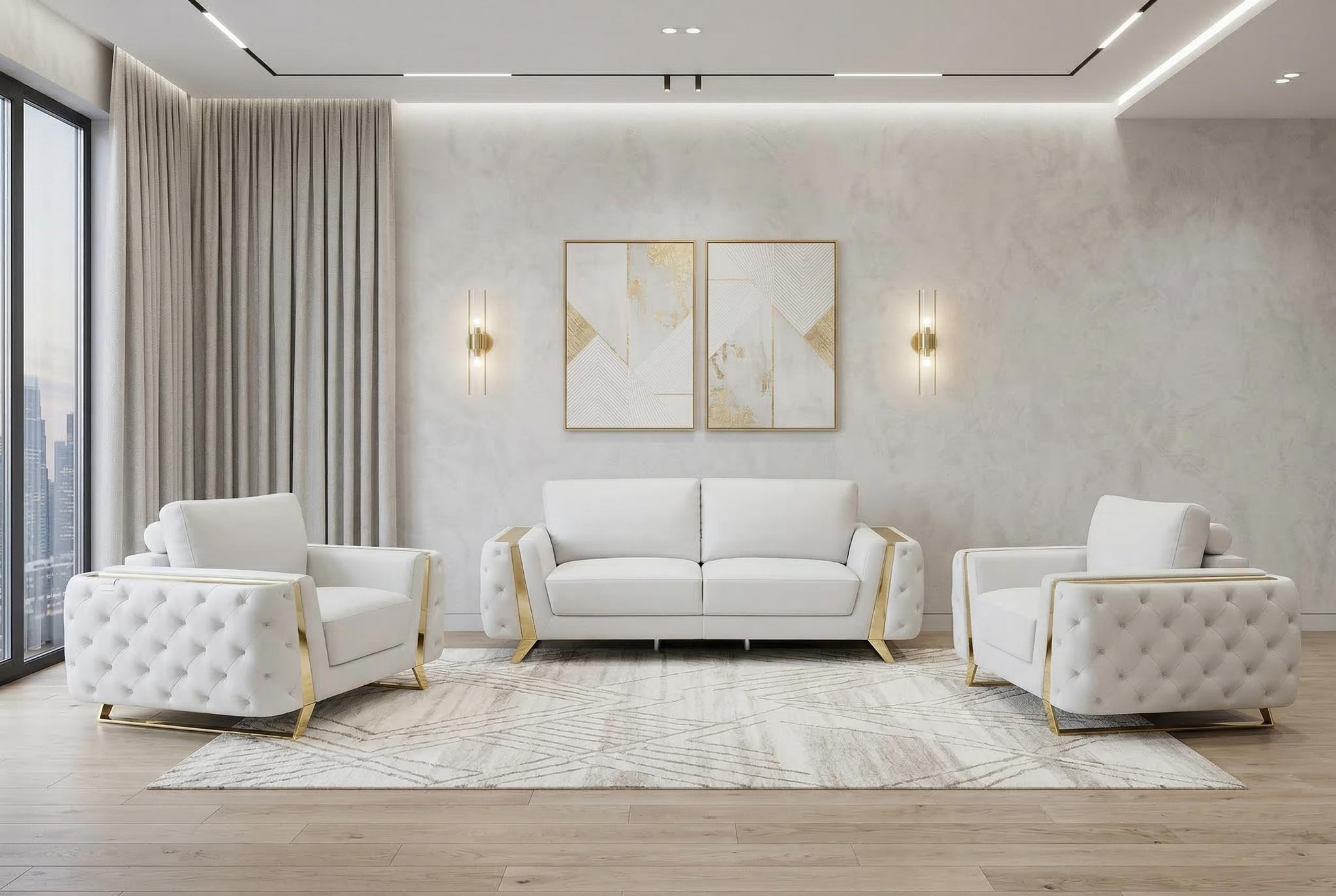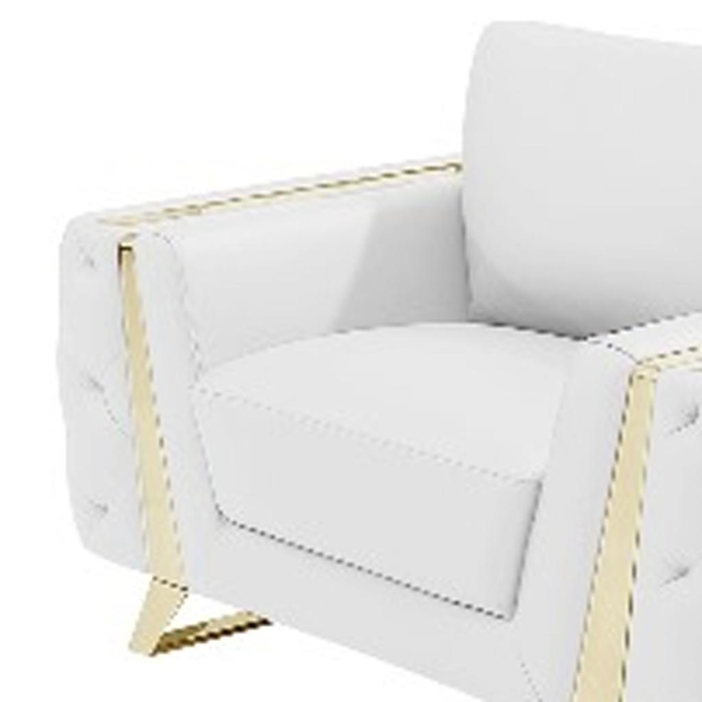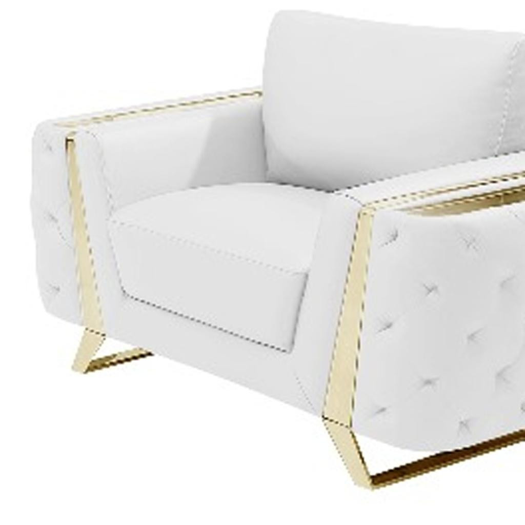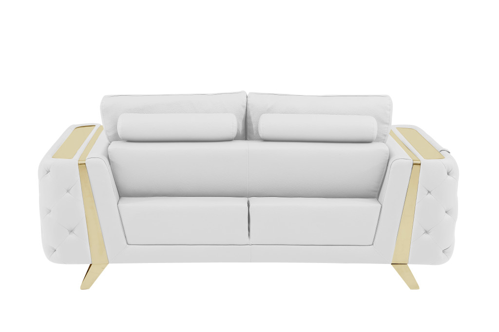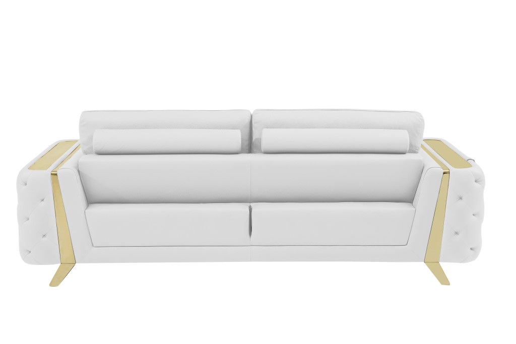 Prepare to amaze even the most discerning critics with our three piece indoor white italian leather six person seating set - the epitome of indoor seating that will leave them speechless. Elevate your living space with durable, comfortable, and luxurious leather upholstery. Coil spring seat construction provides excellent comfort by offering a responsive and supportive seating experience, gently contouring to the body's natural curves. The inclusion of a loveseat into your mix allows a fashionable seating option in a compact design. Gather with family and loved ones with this seating set that will bring you all together. 33.5-inch H x 90-inch W x 39-inch D